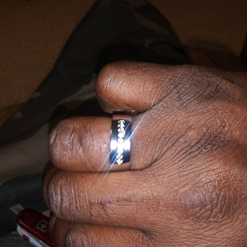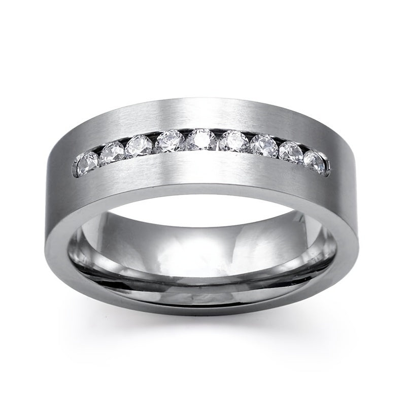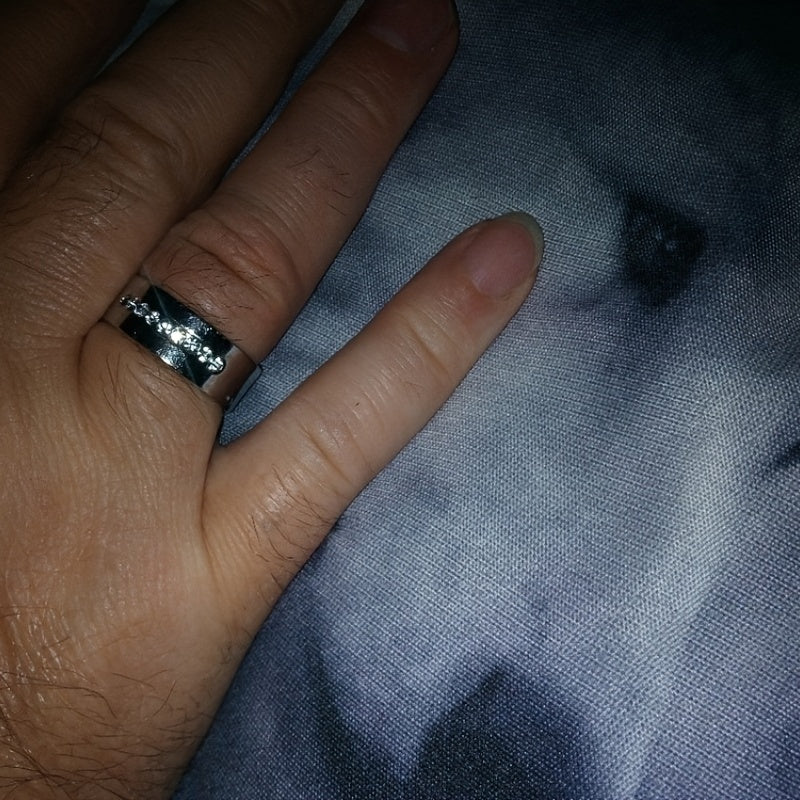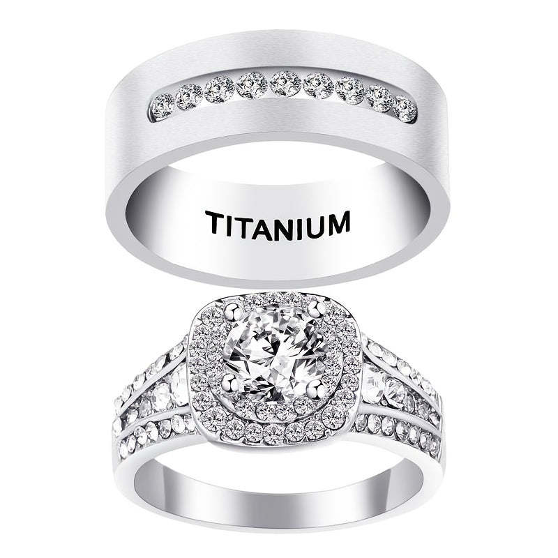This couple ring set features a stylish design made from durable stainless steel and titanium. Perfect for engagements or as a meaningful gift.