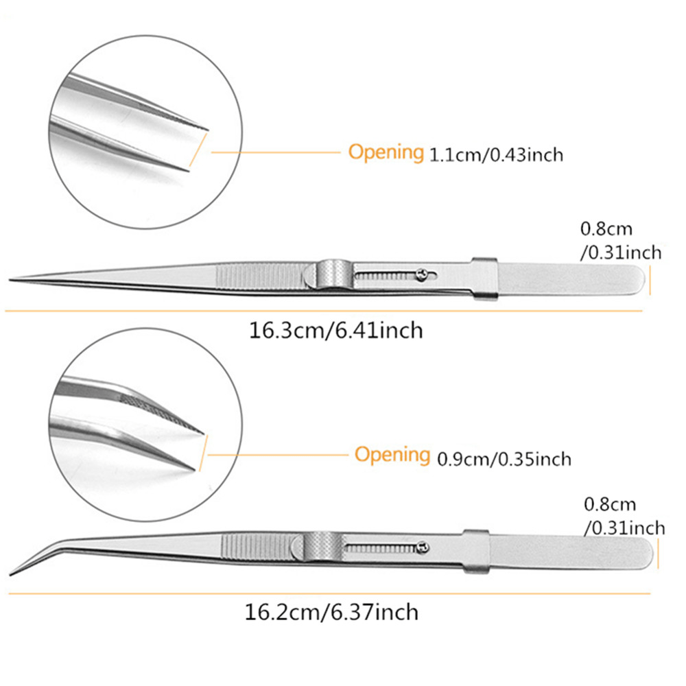 These stainless steel tweezers are perfect for handling small components in jewelry making and electronic work. The slide lock feature ensures precise grip and control.