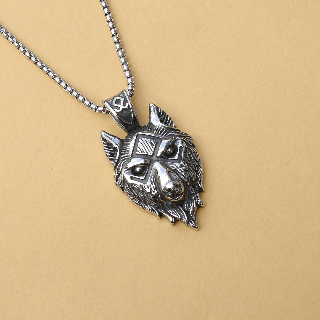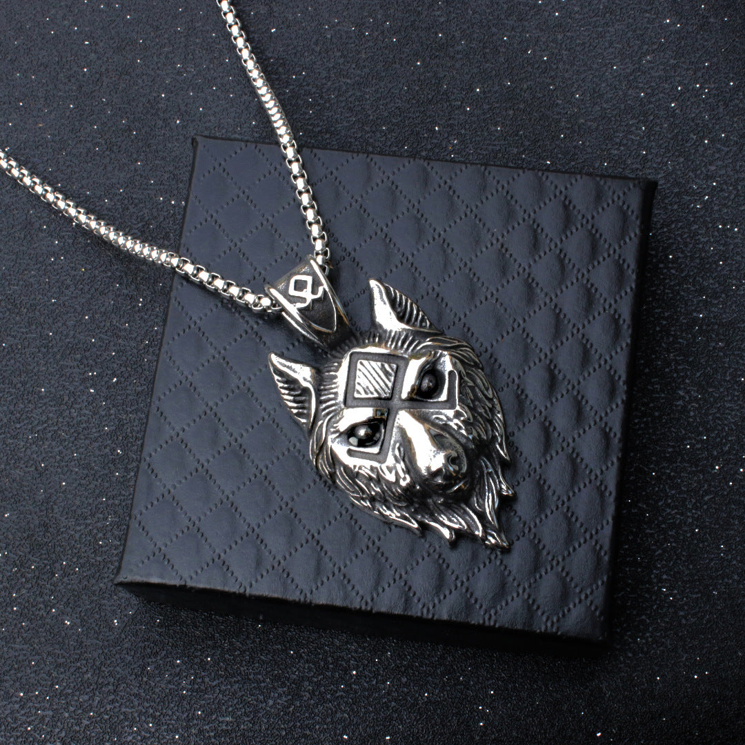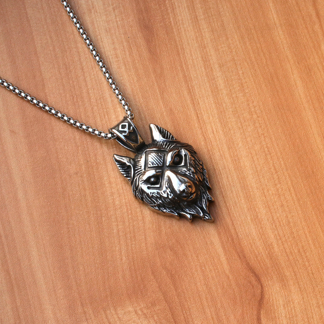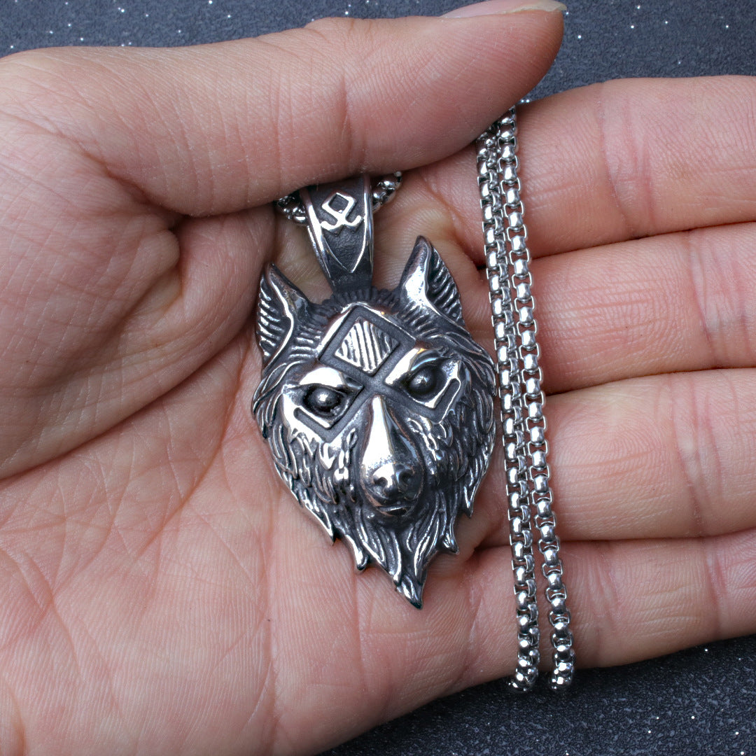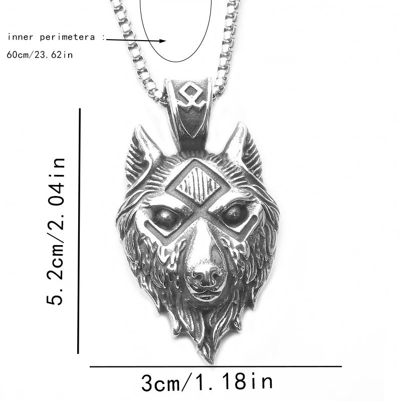 This stainless steel necklace features a Viking wolf design, perfect for men who appreciate gothic and punk styles. The wolf head pendant is a bold amulet symbolizing strength and power.