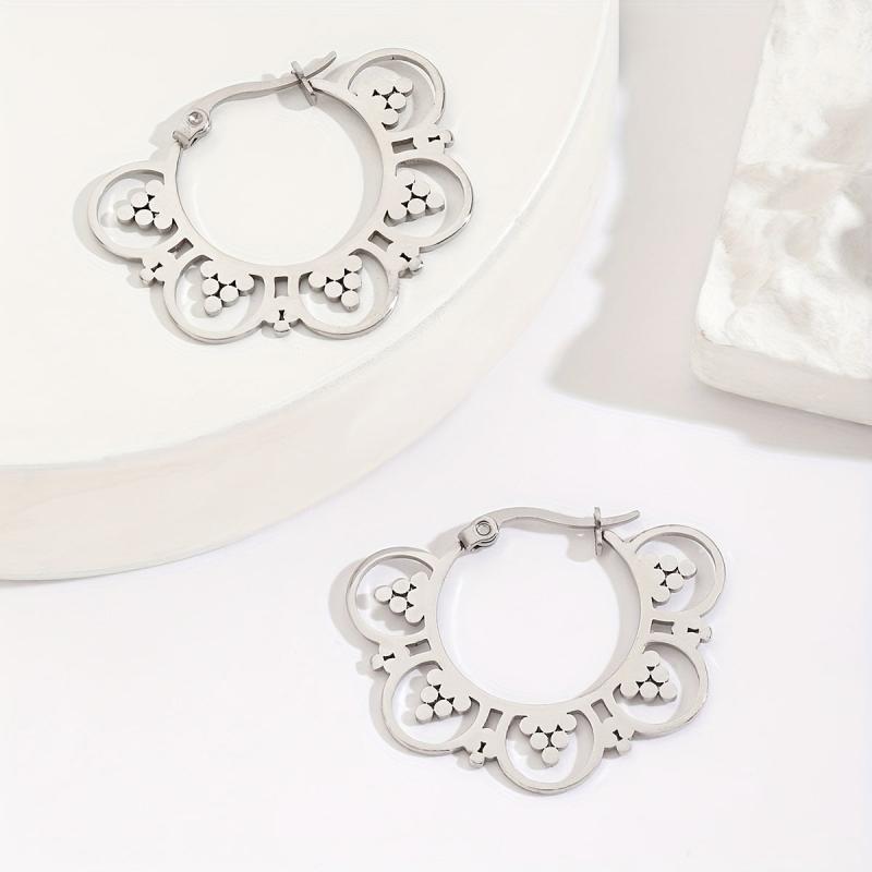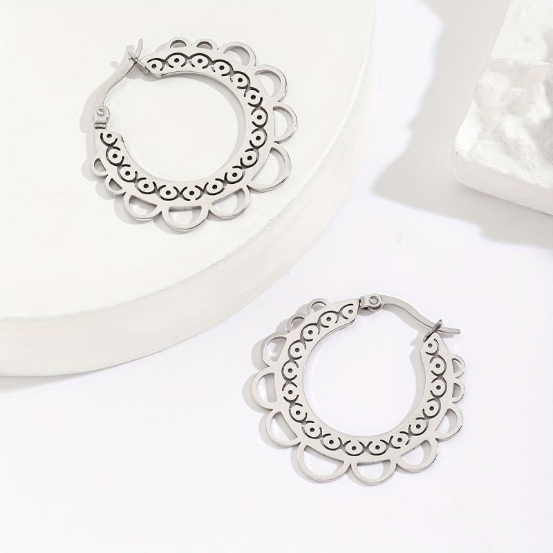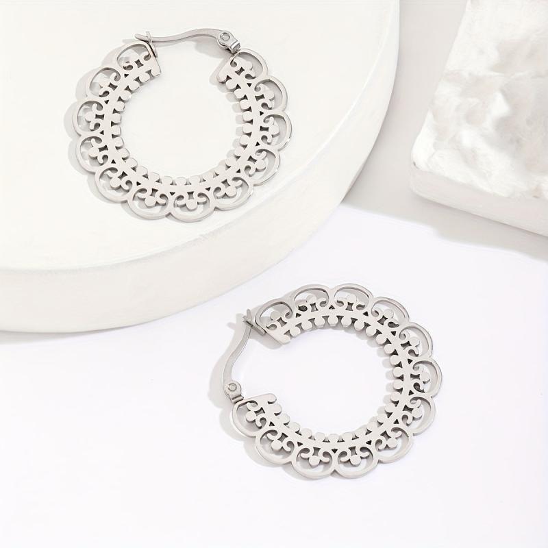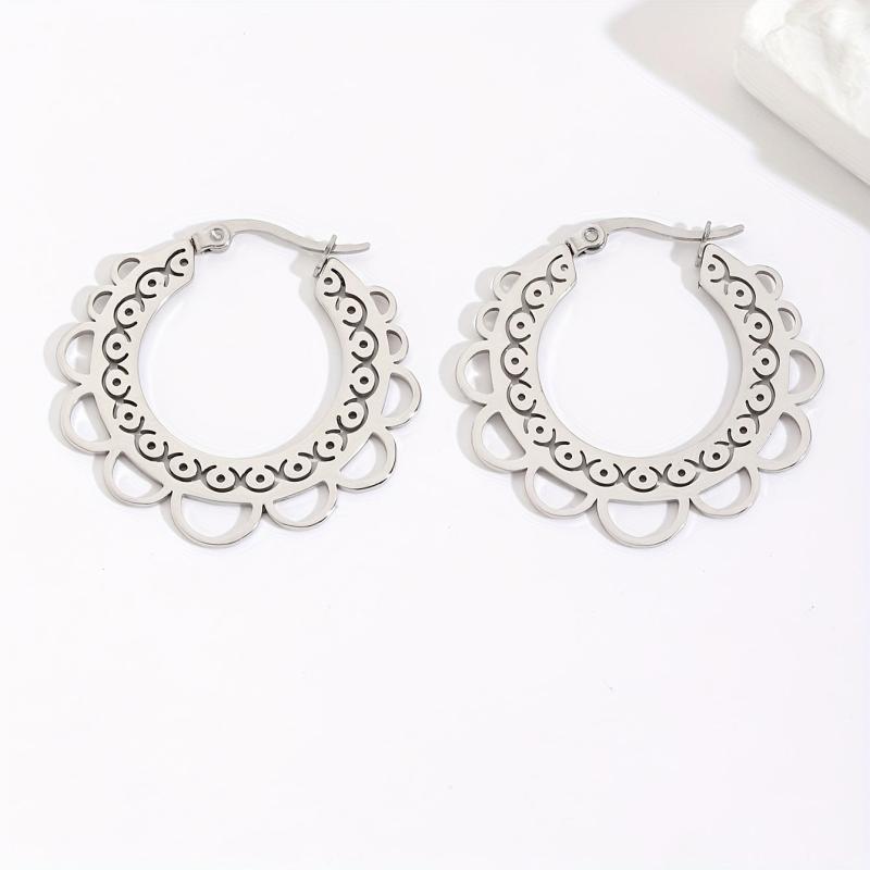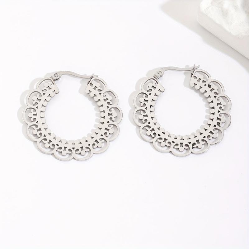 These stainless steel earrings feature a vintage and bohemian lace tassel pattern, making them a perfect addition to your retro hoop collection.