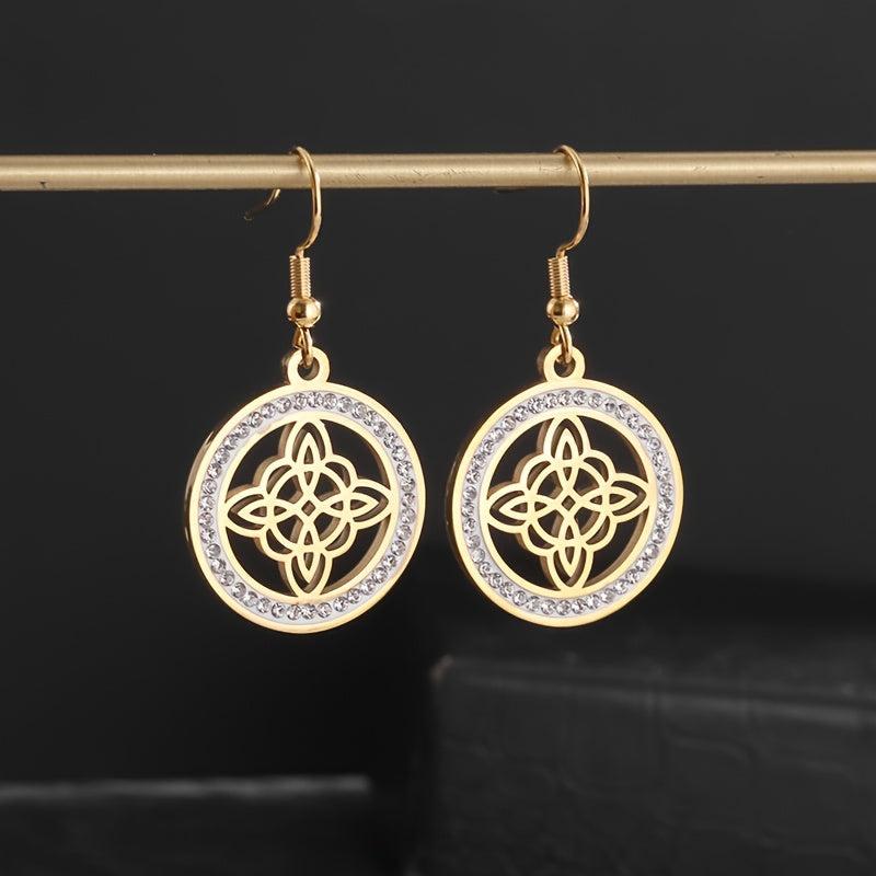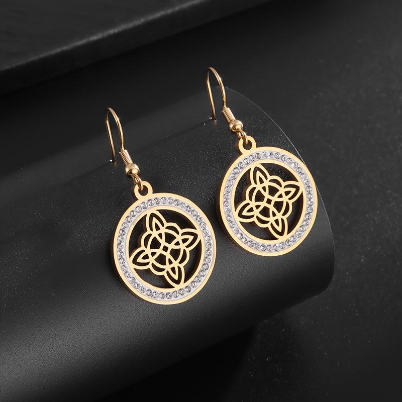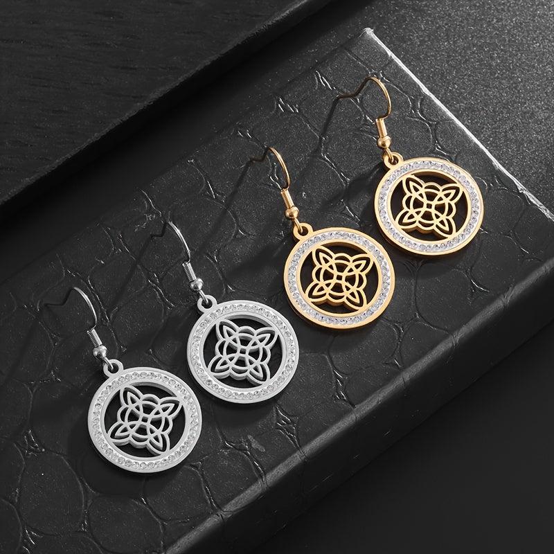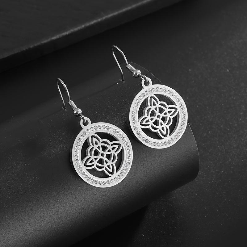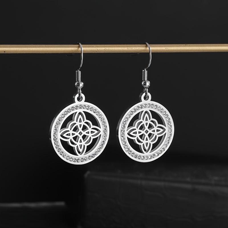 Elegant stainless steel witch knot earrings with inlaid cubic zirconia, perfect for Christmas or any occasion.