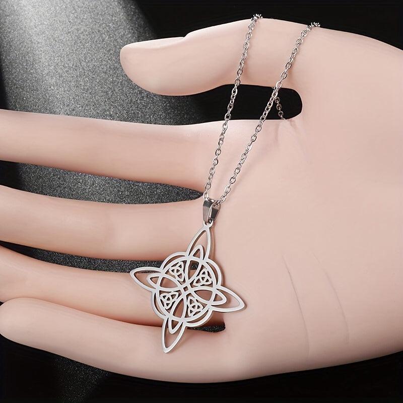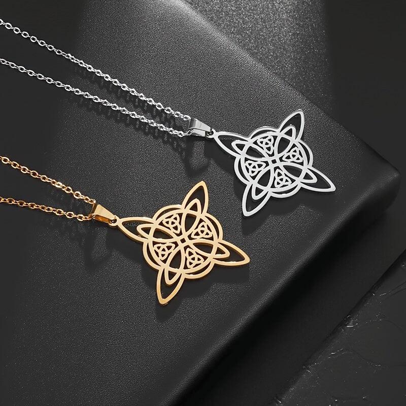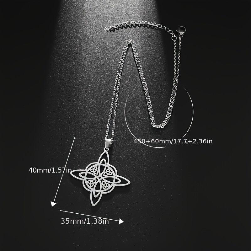 This stainless steel pendant necklace features a witch knot design, perfect for men and women who appreciate Celtic symbolism and magic. It makes a great amulet jewelry gift.