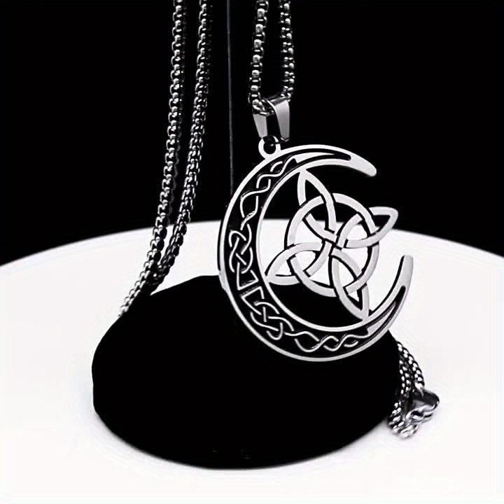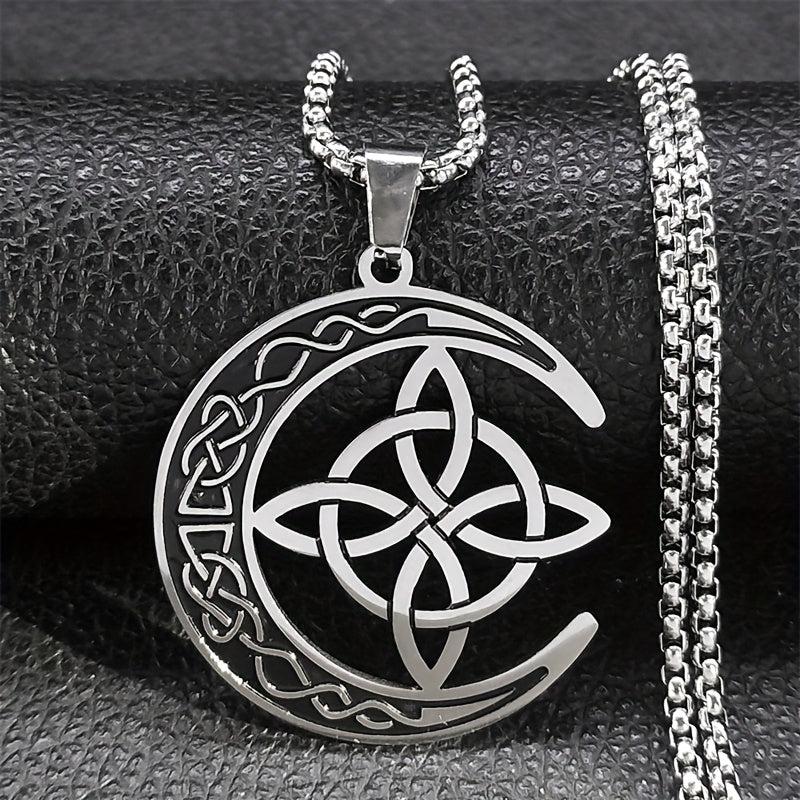 Stainless Steel Witch & Moon Celtic Knot Pendant Necklace
