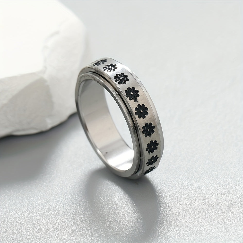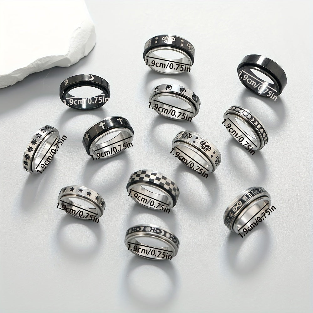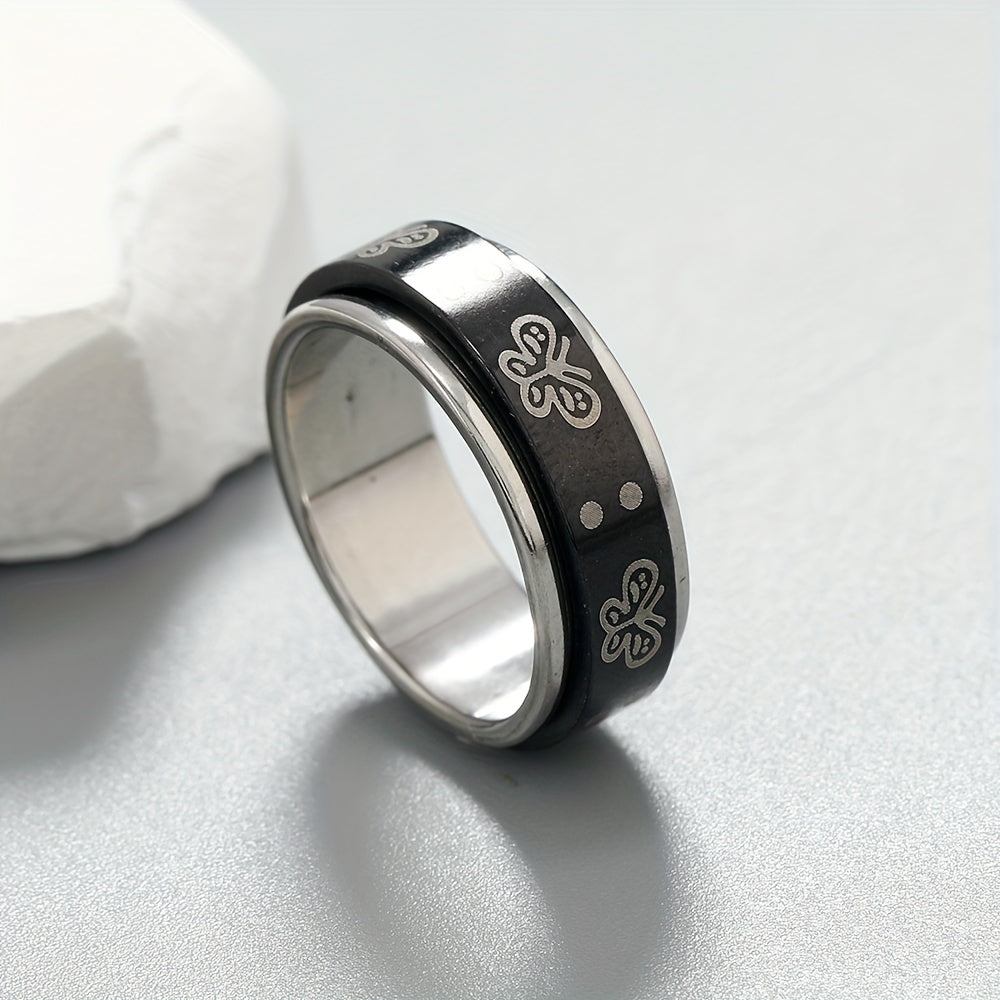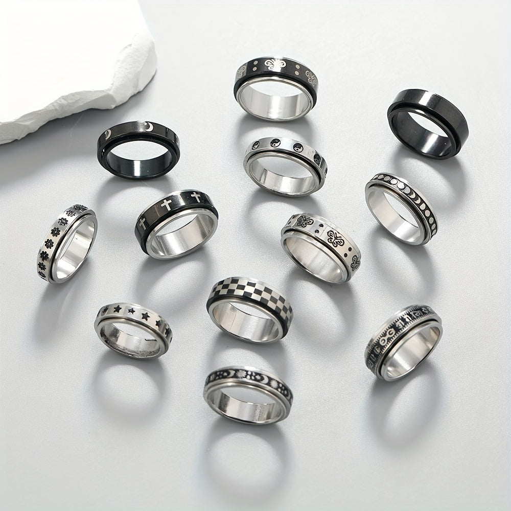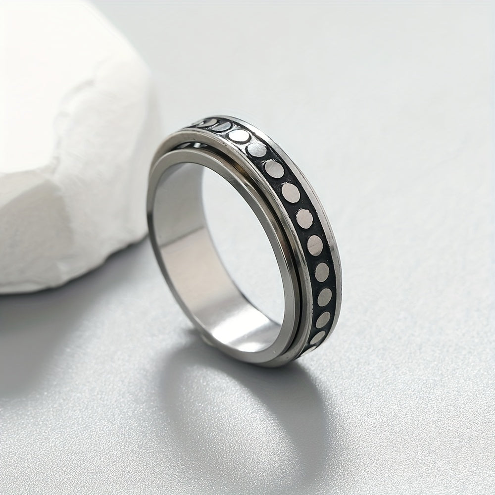 This stainless steel ring set features a unique design with a rotating element. It is perfect for men who appreciate stylish and distinctive jewelry.