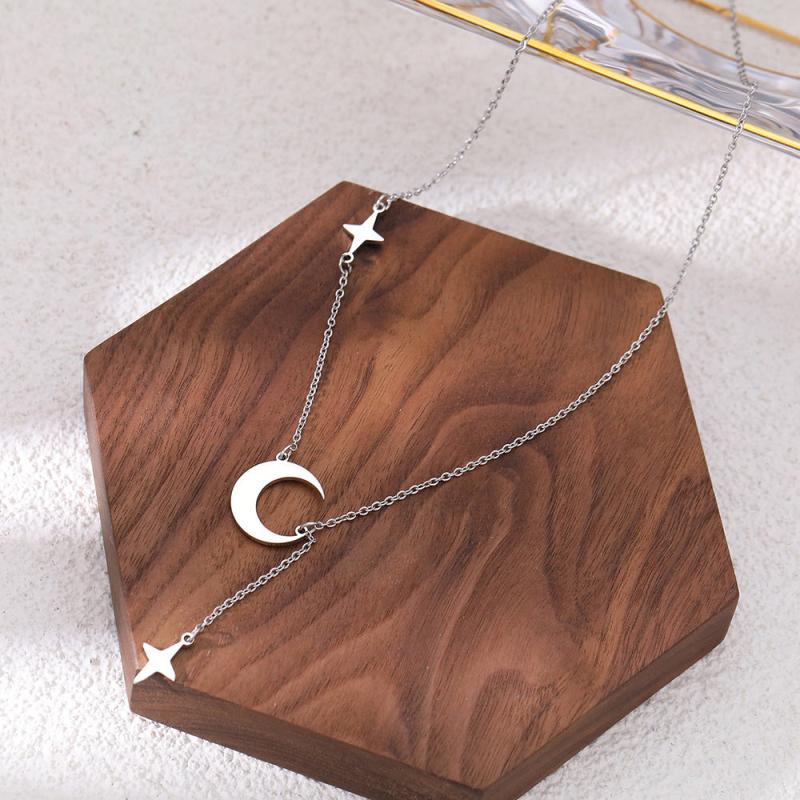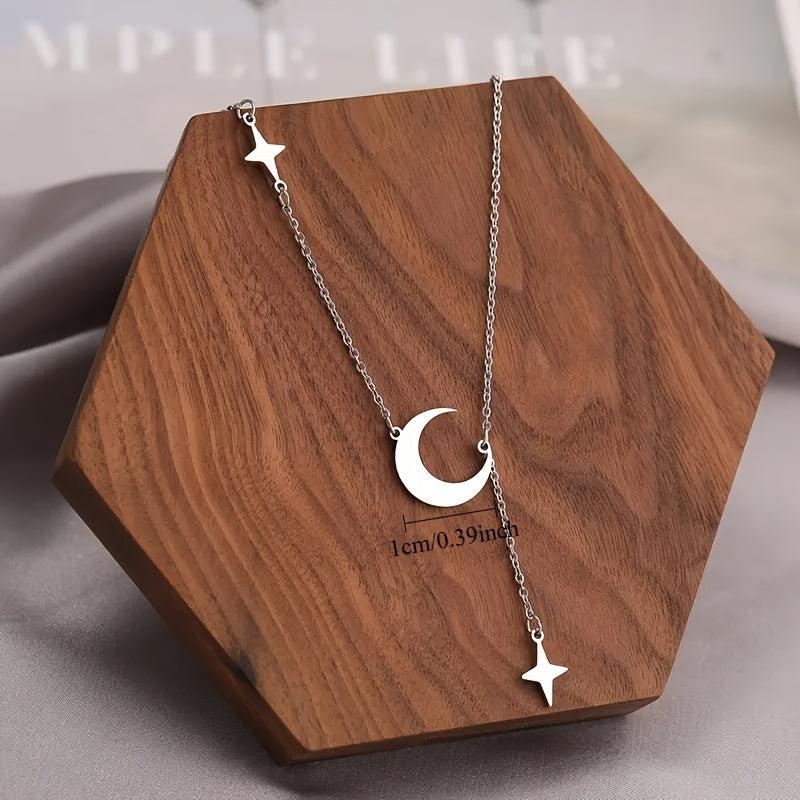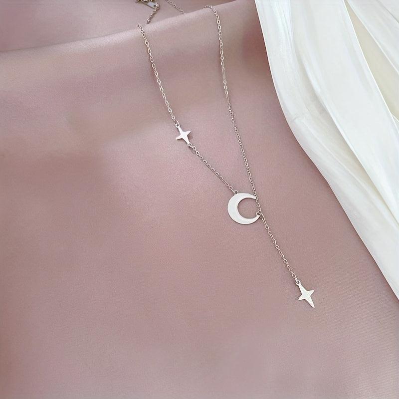 This hypoallergenic necklace features a stylish star and moon pendant that is perfect for daily wear, parties, and concerts. It is an ideal gift for friends.