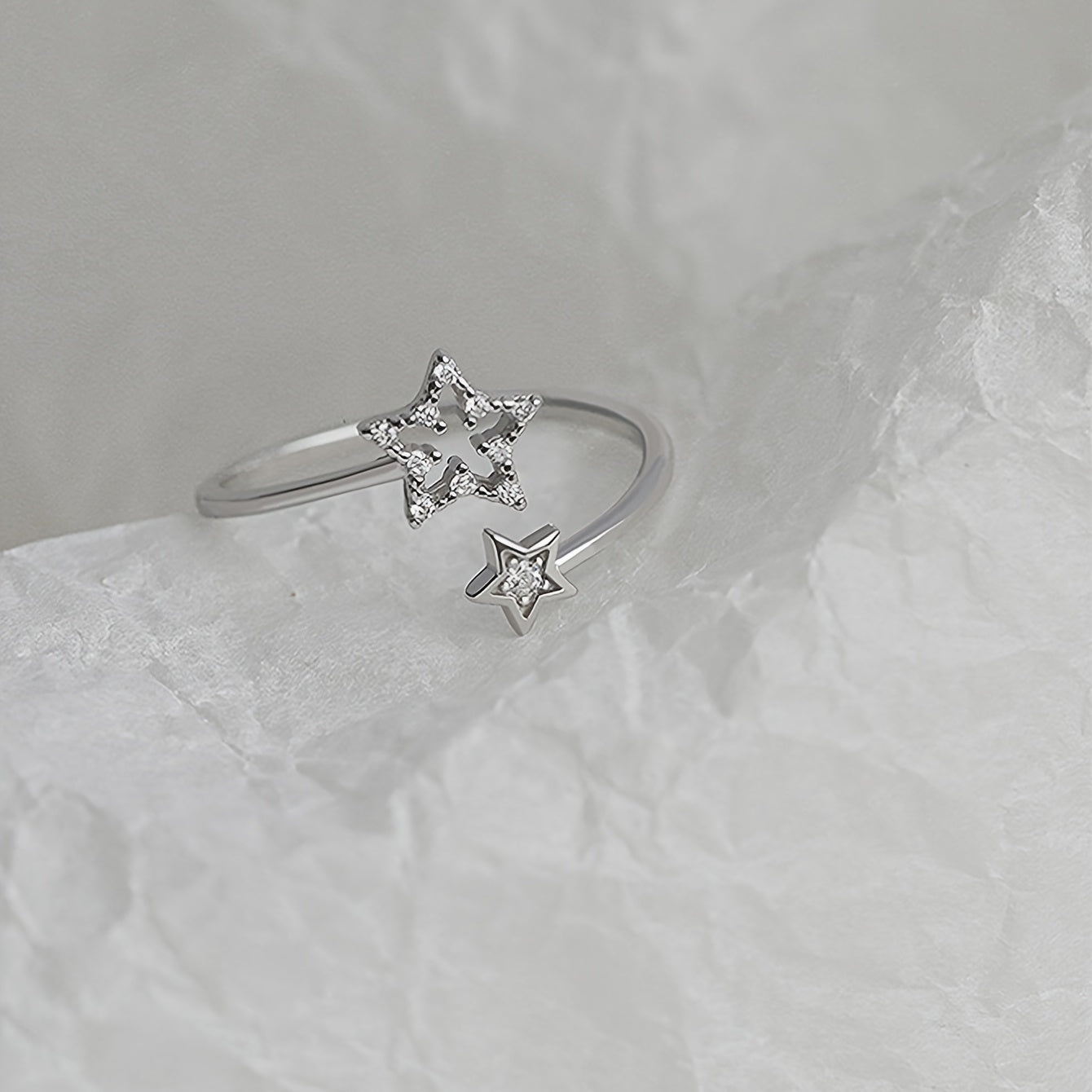 Beautiful star opening ring featuring zircon inlay design. Adjustable size for a perfect fit.