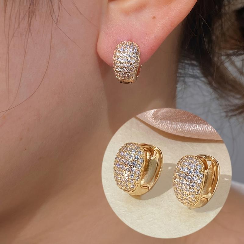 Elegant earrings with a star-filled design and micro set zirconia, perfect for adding a fashionable touch to any outfit.