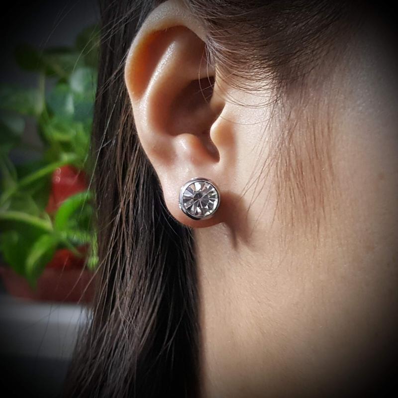 Add sparkle to your style with these steel Swiss crystal fake plug barbell stud earrings. They offer a trendy and edgy look without the commitment of a real plug piercing.