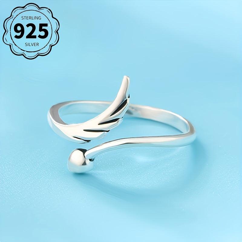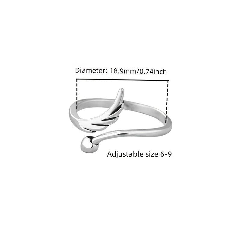 Sterling Silver 925 Angel Wing Cuff Ring for Women Classic Style Adjustable