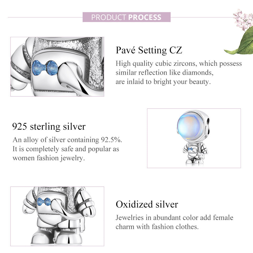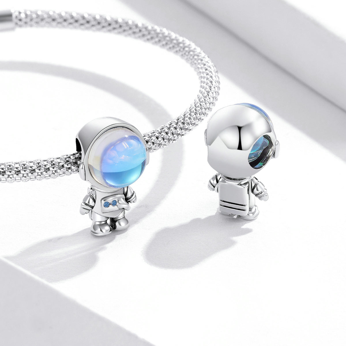 Explore the universe with this sterling silver space-themed astronaut charm. Compatible with bracelets and necklaces, this DIY jewelry piece is the perfect gift for men and women.