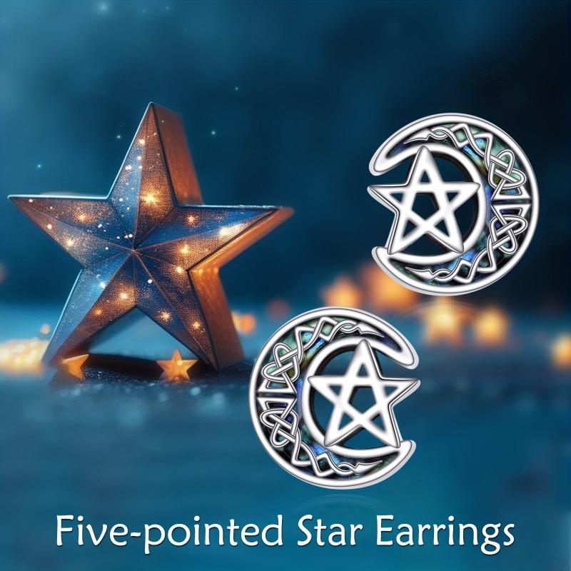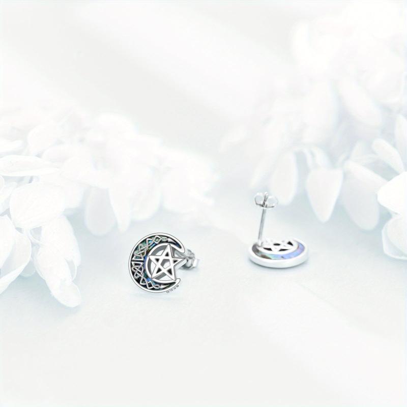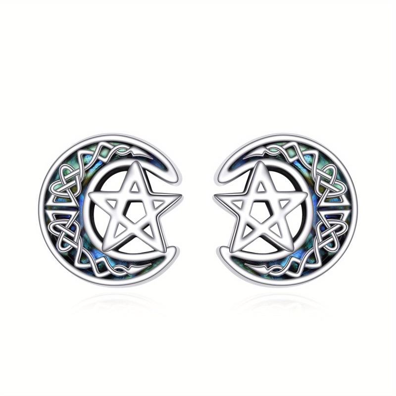 These 925 sterling silver earrings feature a Celtic pentagram design with moon accents. Perfect for women who love pentagram jewelry.