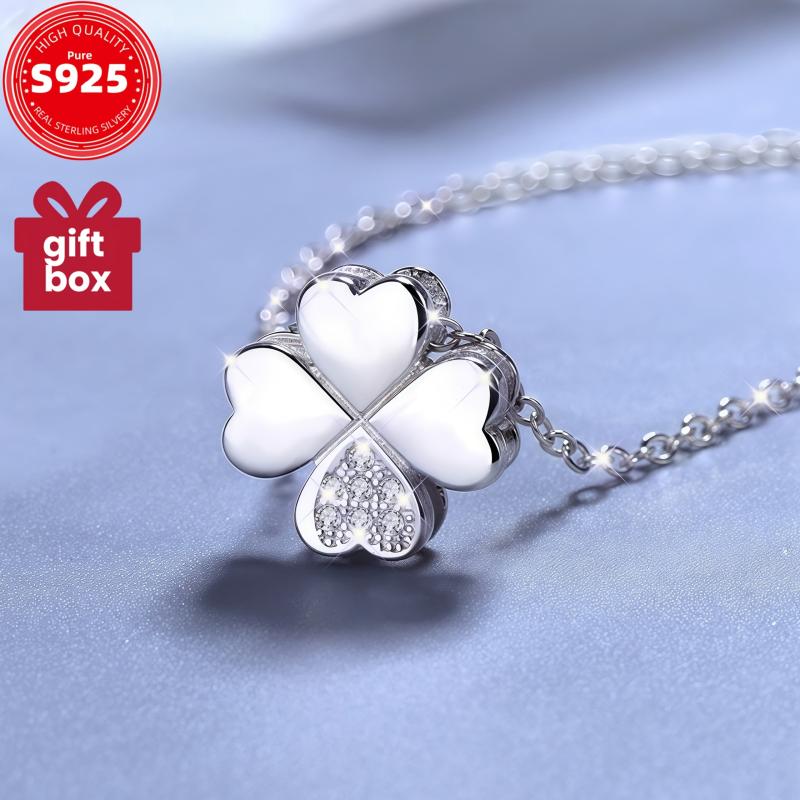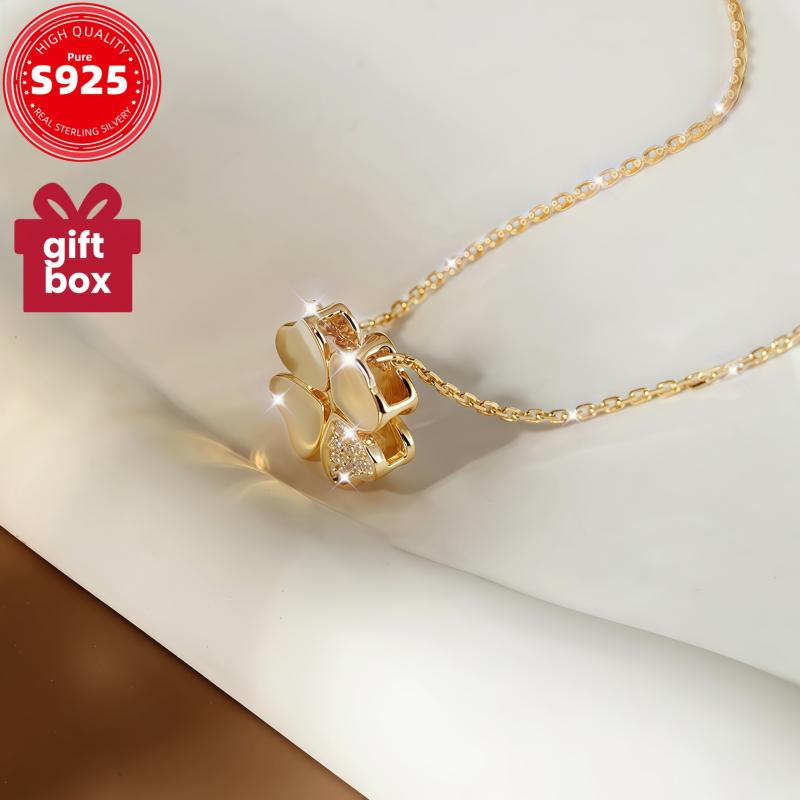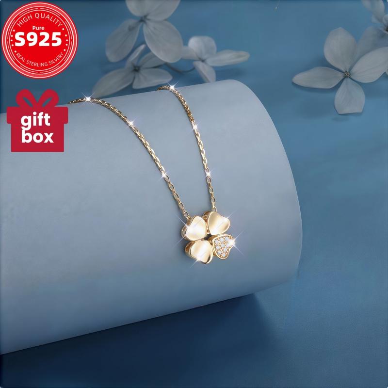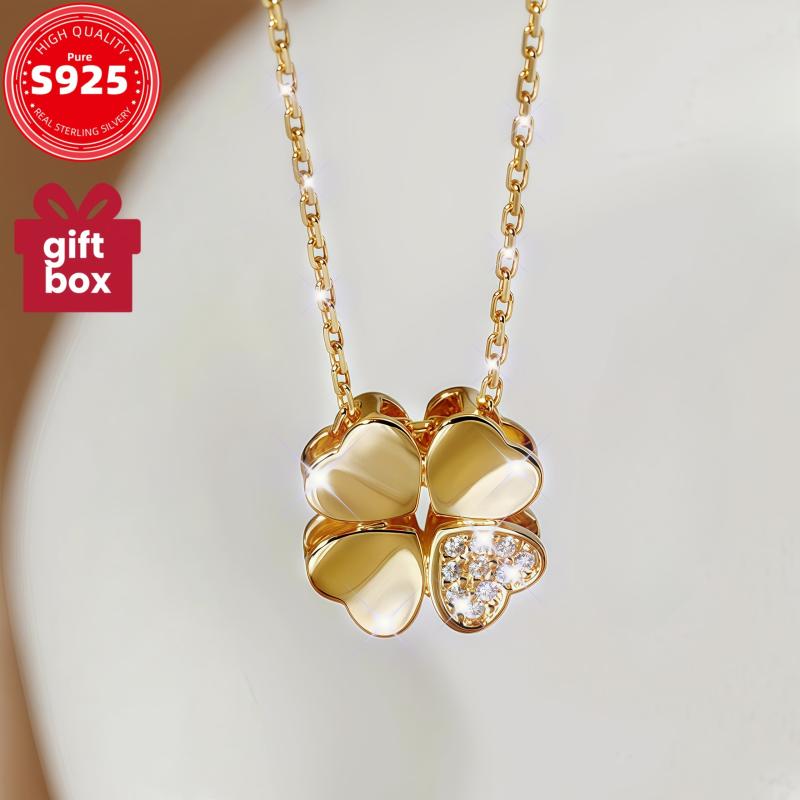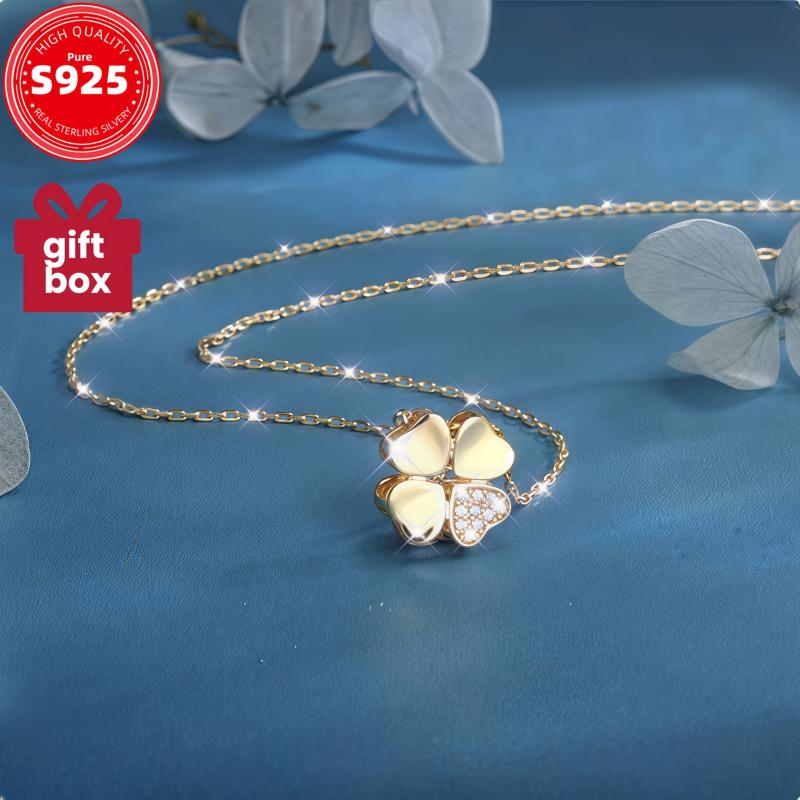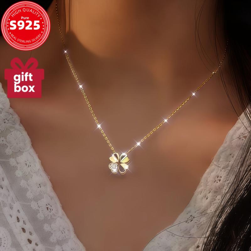This elegant necklace features a four-leaf clover design with sparkling cubic zirconia. Perfect for daily wear or vacations.
