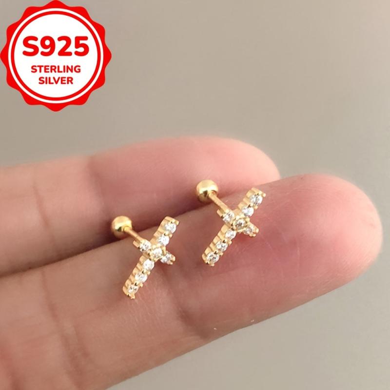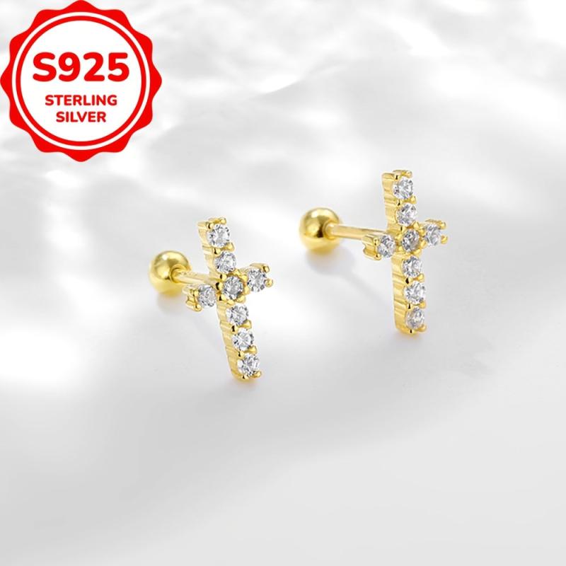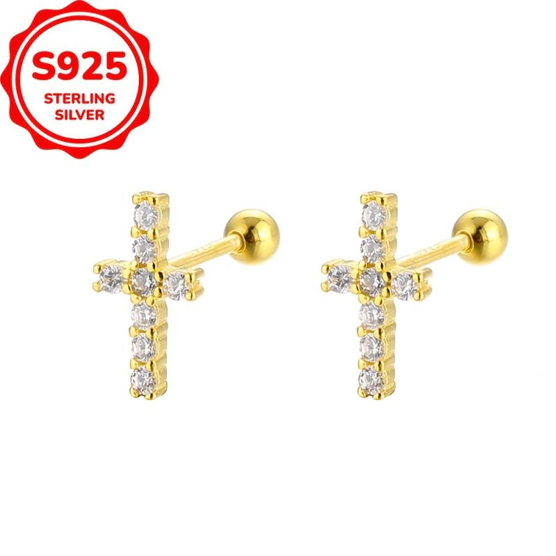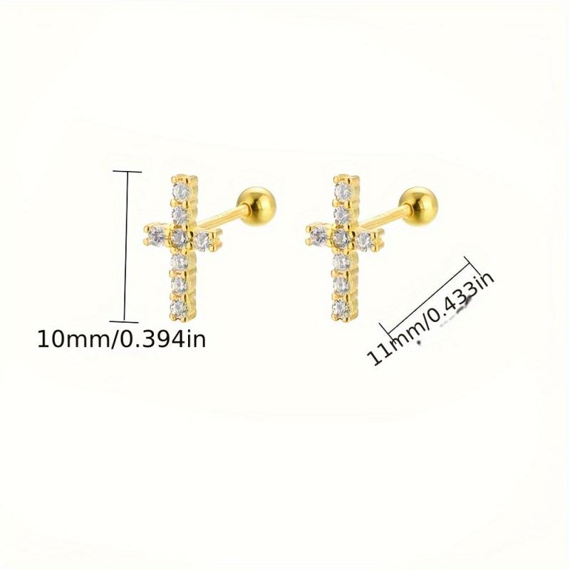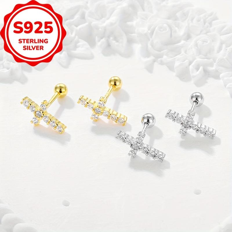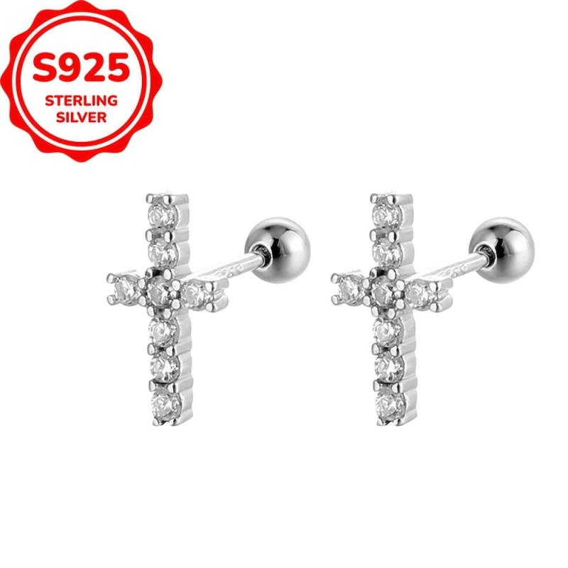 Add a touch of elegance to your look with these sterling silver cross stud earrings featuring sparkling cubic zirconia. Ideal for everyday wear or as a thoughtful gift.