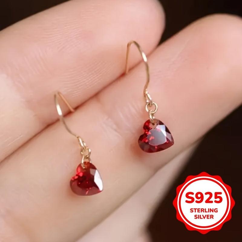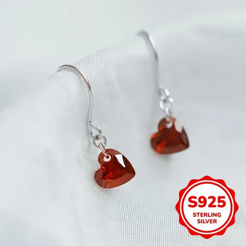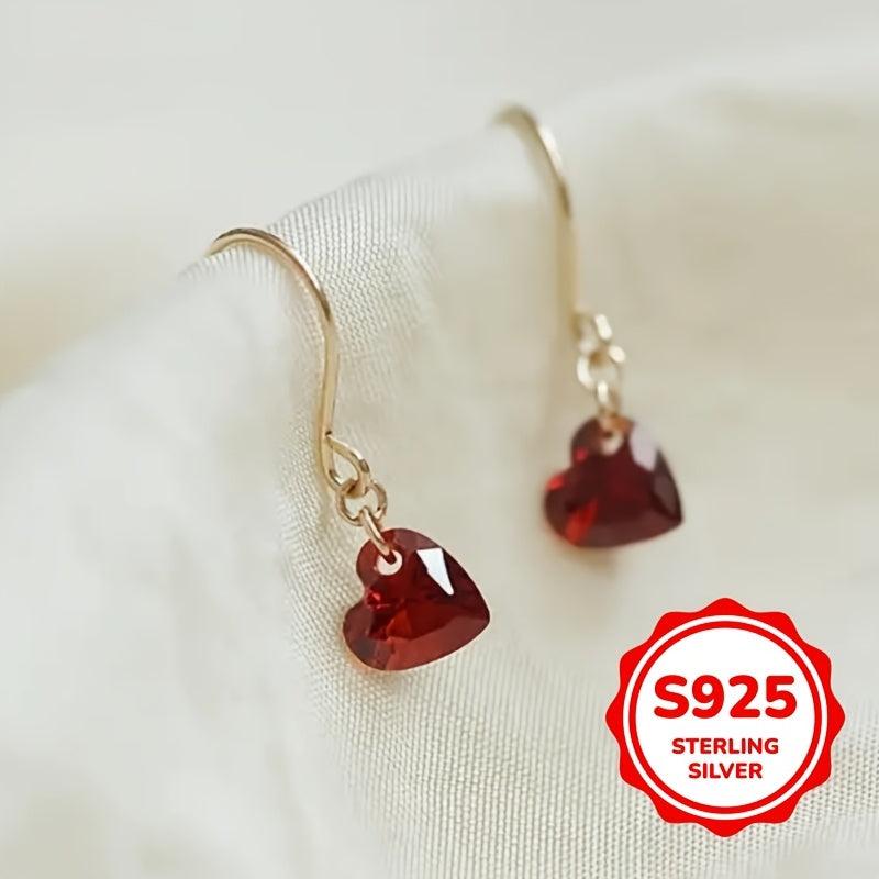Add a touch of elegance to your wedding attire with these stunning dangle earrings featuring a red heart pendant. Made from S925 sterling silver, these earrings are perfect for brides or bridesmaids.