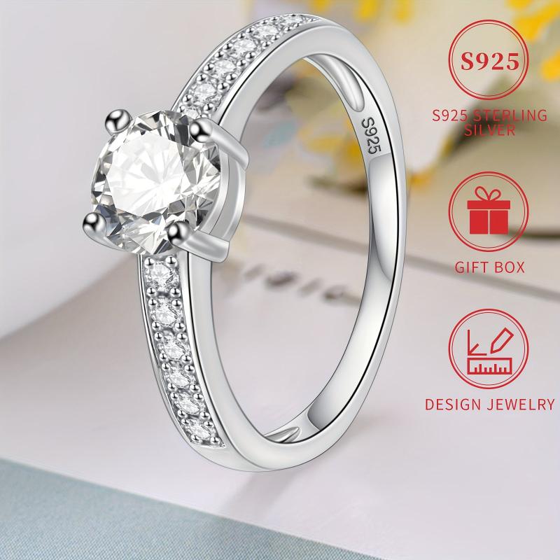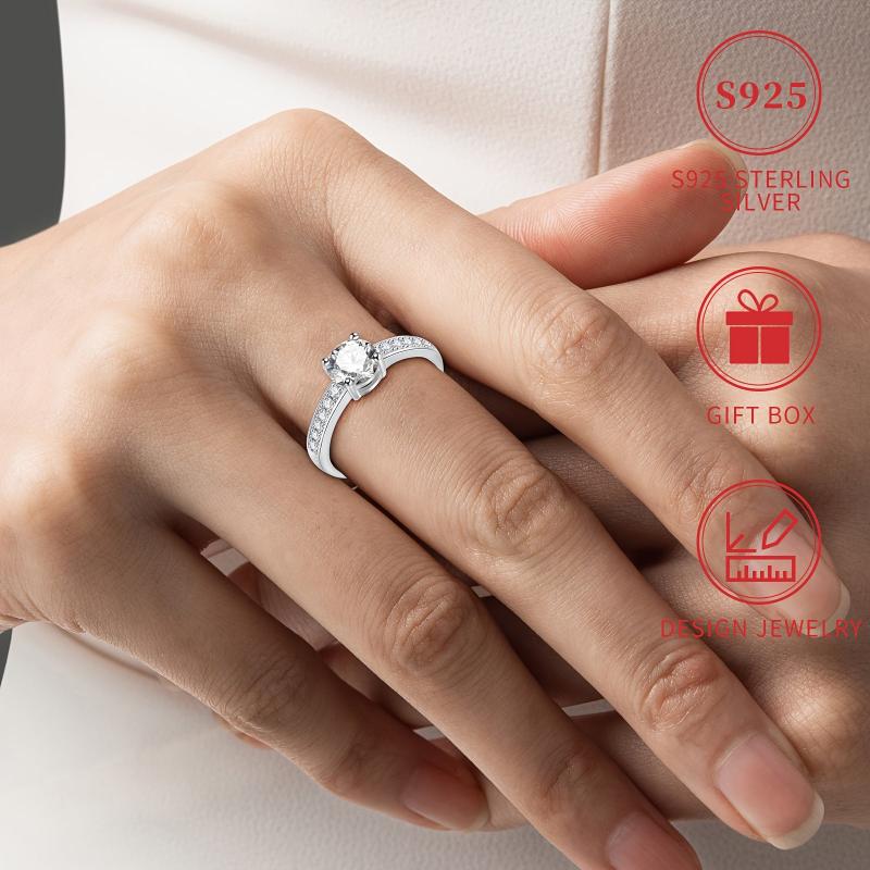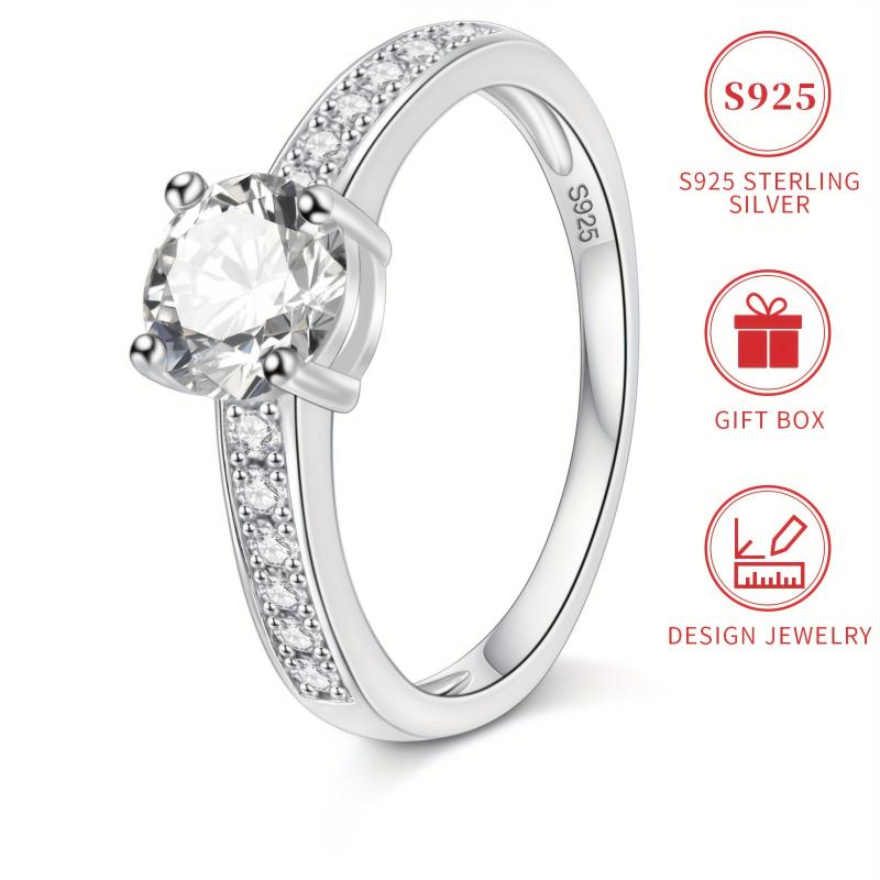 Gorgeous engagement ring crafted from hypoallergenic nickel-free S925 sterling silver. Features sparkling cubic zirconia stones, ideal for weddings and anniversaries.