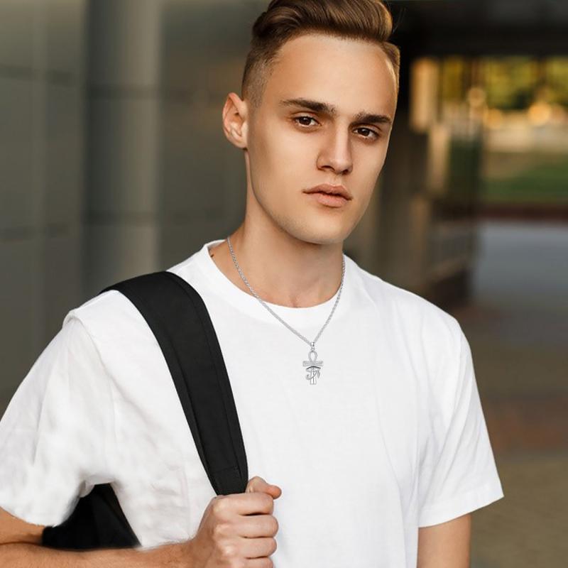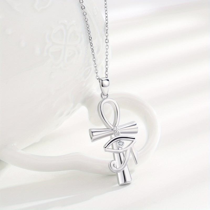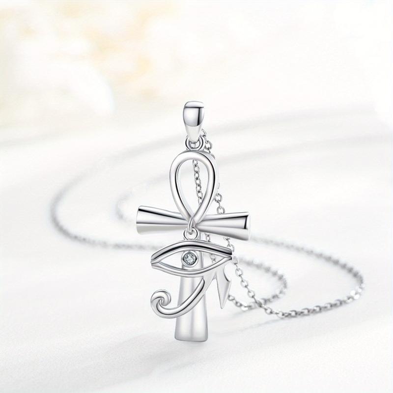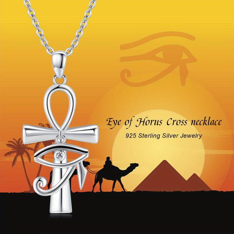 This stunning necklace features the Eye of Horus pendant on an Ankh cross, symbolizing protection and power. Crafted from 925 sterling silver, it makes a perfect gift for mothers and women.
