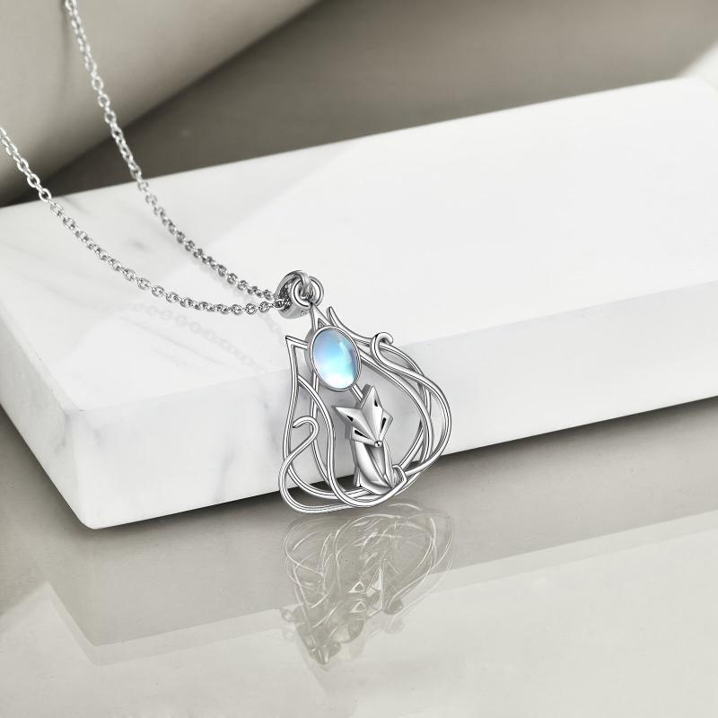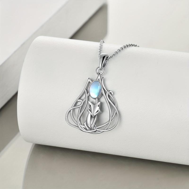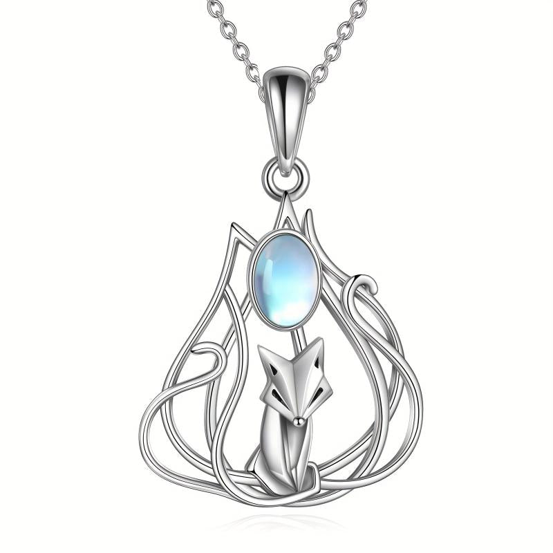 Adorn yourself with this stunning sterling silver fox pendant necklace featuring a moonstone accent. Perfect gift for girls on birthdays or Christmas.