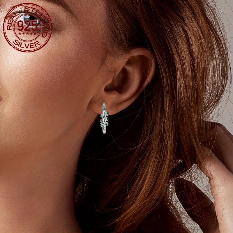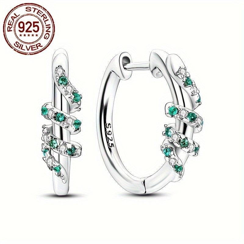 Add a touch of sparkle to your outfit with these stunning Sterling Silver Hoop Earrings. Featuring green zirconia stones and a twining serpent design, these earrings are perfect for parties and Valentine's Day. The earrings are made of 925 sterling silver with no plating, making them versatile for any occasion.