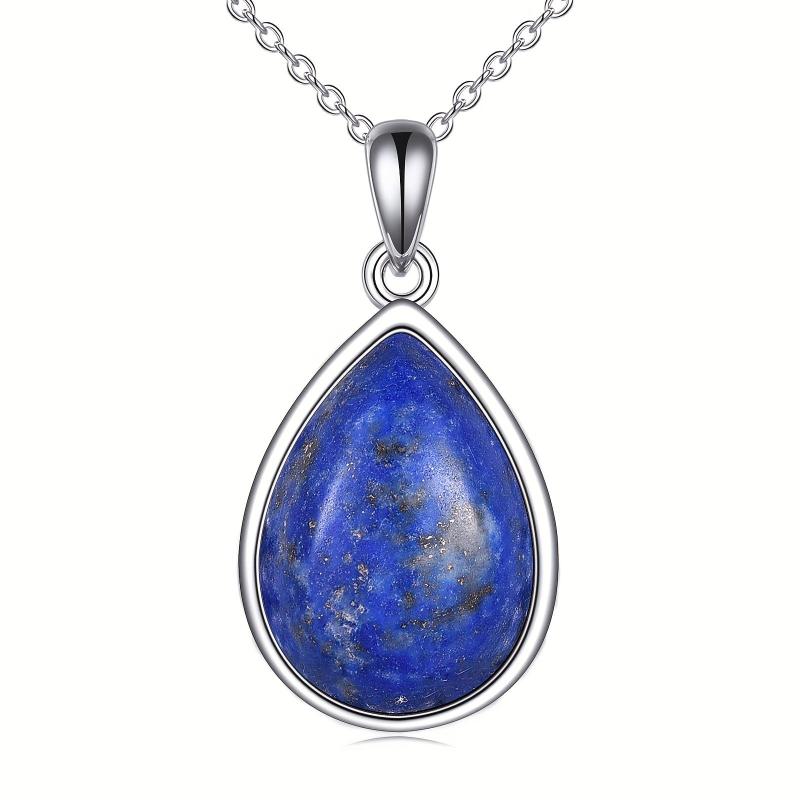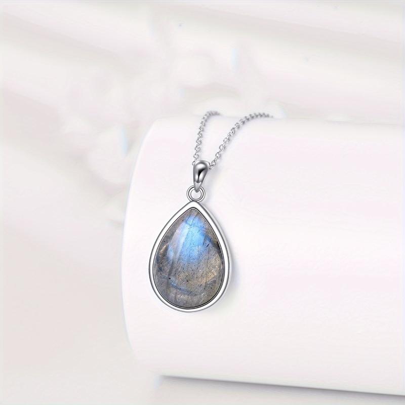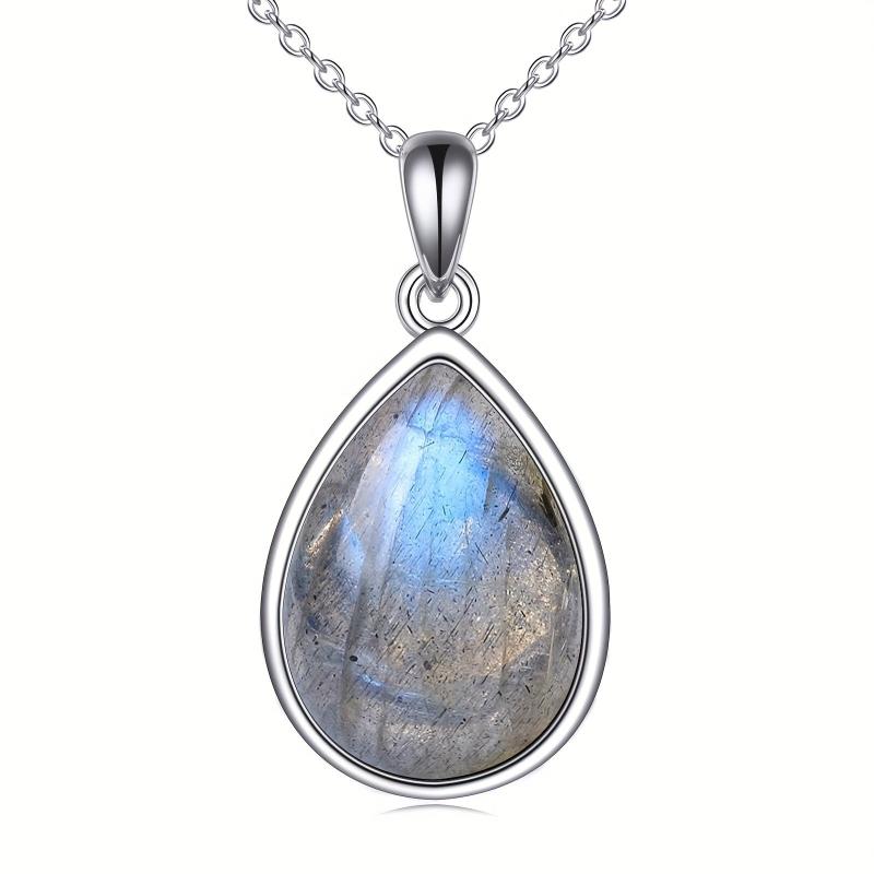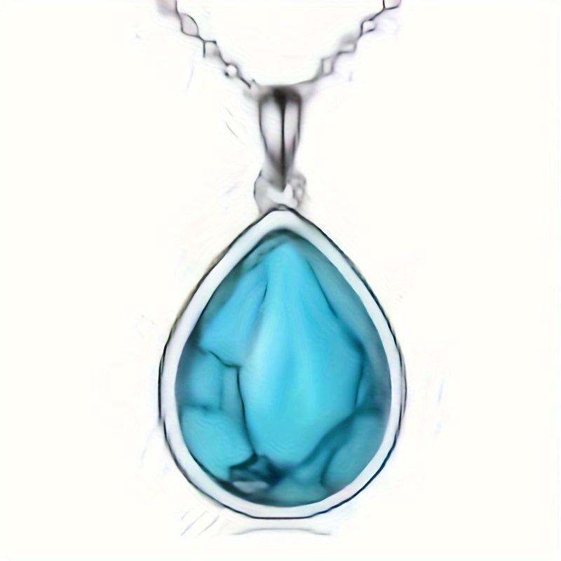 Elegant teardrop necklace featuring Larimar, Labradorite, Turquoise, and other gemstones. This sterling silver necklace is perfect for any occasion.