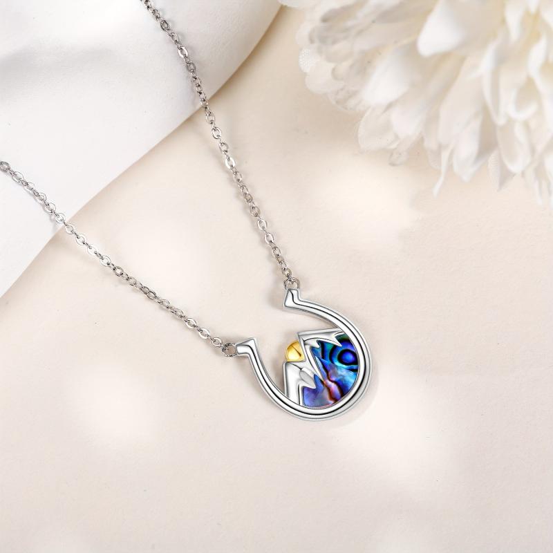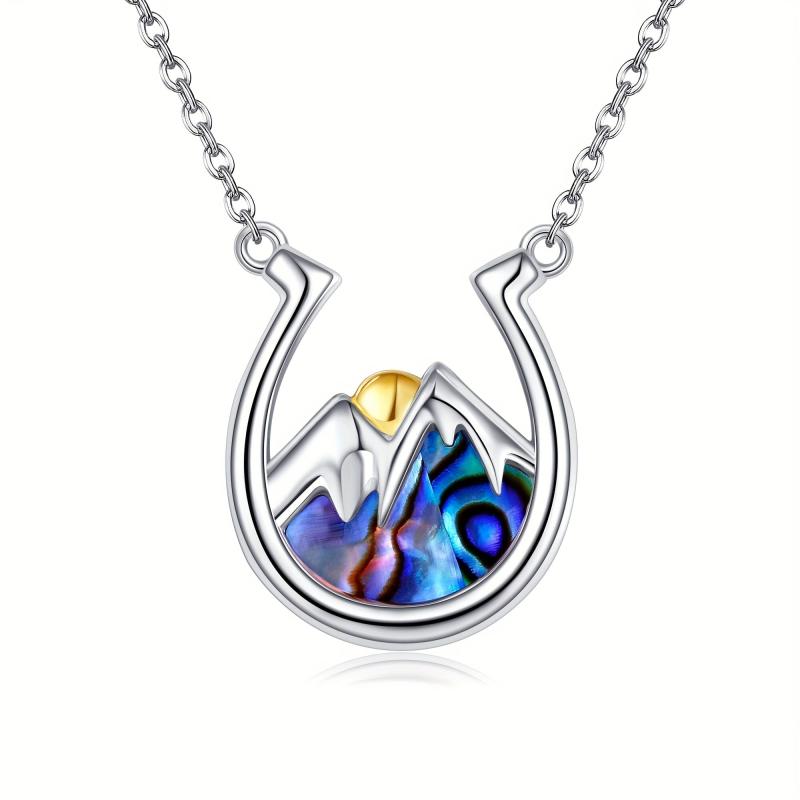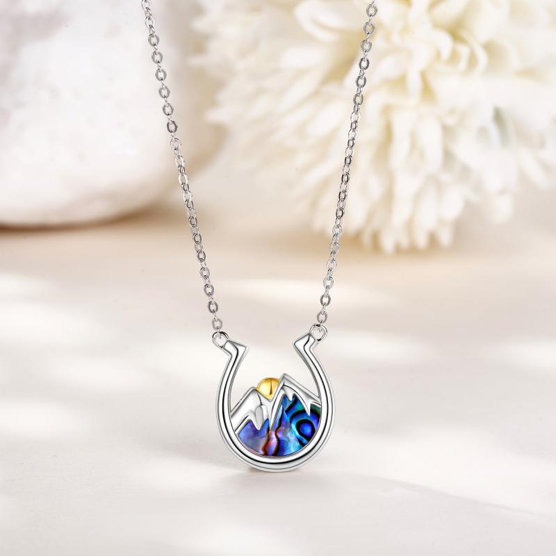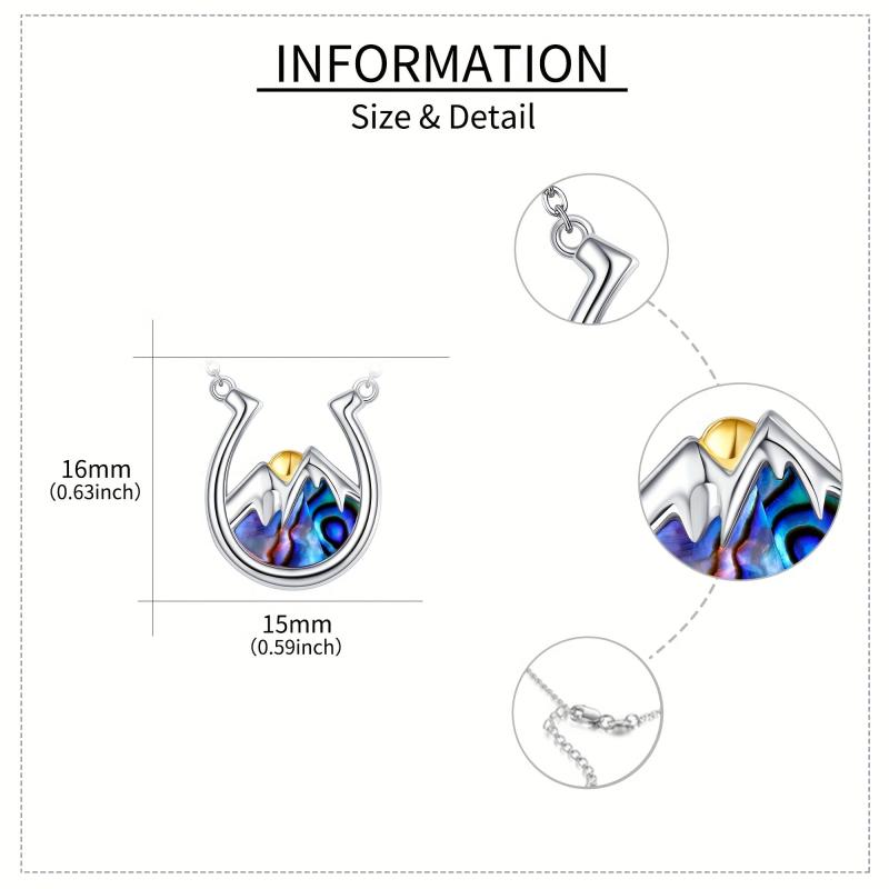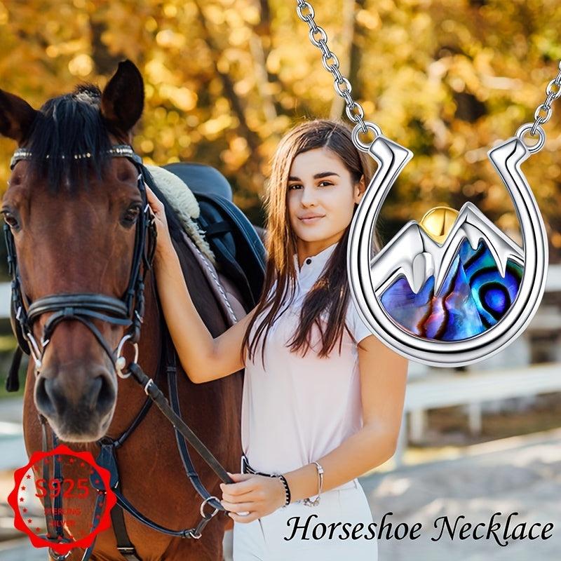 This 925 sterling silver horseshoe necklace is a symbol of luck and protection, featuring a mountain design for a unique touch. Perfect accessory for women and girls.