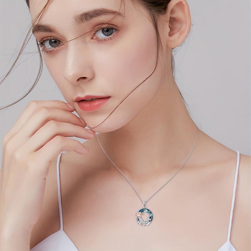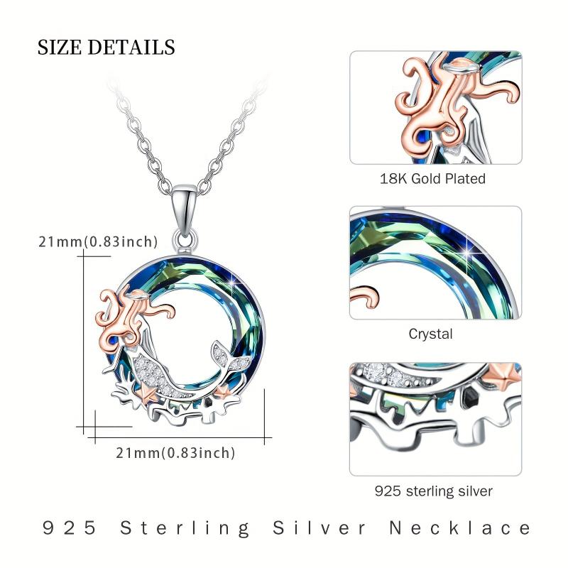 Adorn yourself with this enchanting mermaid necklace made of 925 sterling silver featuring a sparkling synthetic crystal. Perfect for ocean lovers, women, and girls.