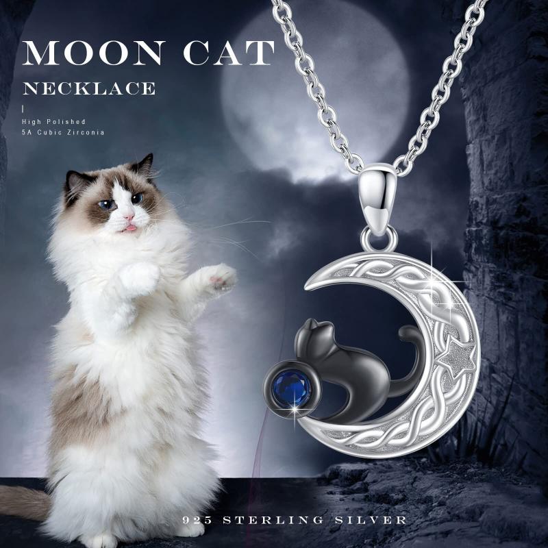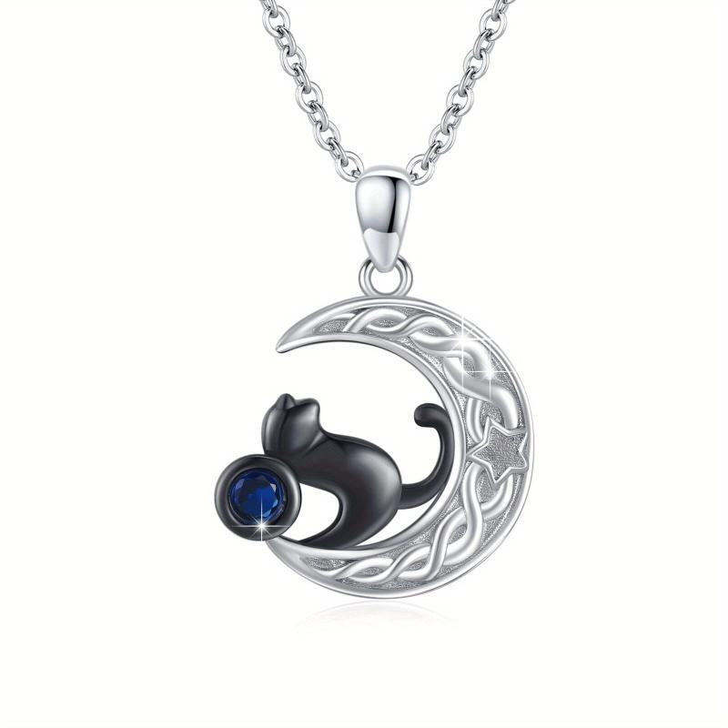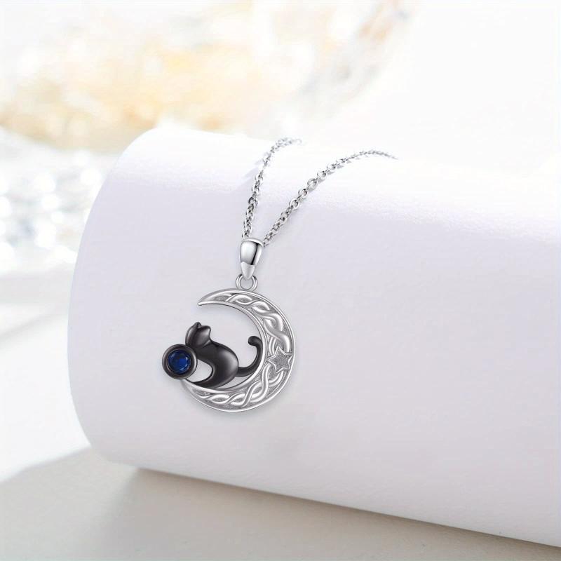 This stunning cat necklace is made of 925 sterling silver, featuring a moon cat pendant with intricate Celtic knot details. It is a perfect gift for cat lovers and mothers alike.