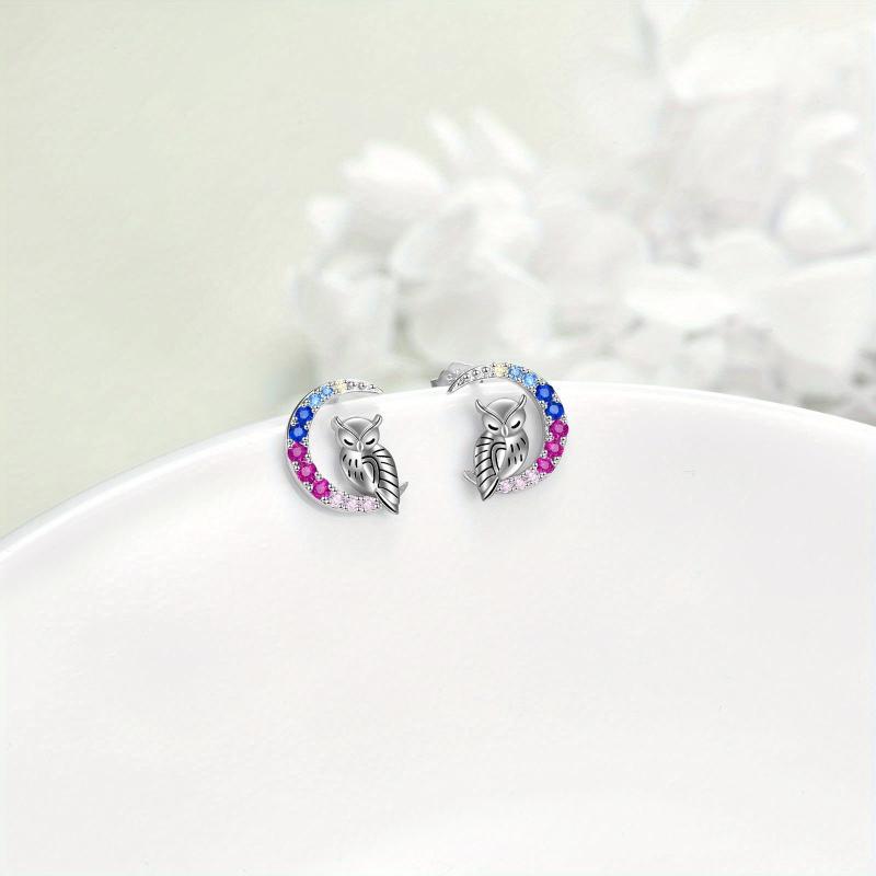 Adorn your ears with these charming sterling silver owl moon stud earrings. Perfect for adding a touch of whimsy to any outfit.