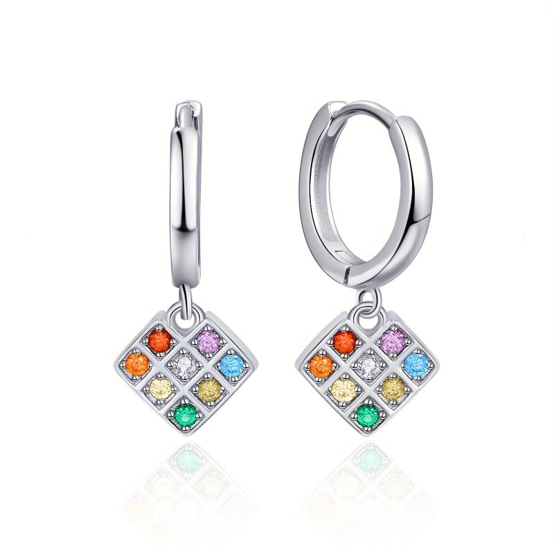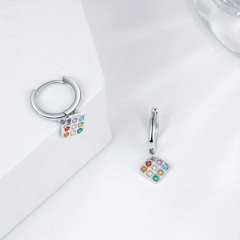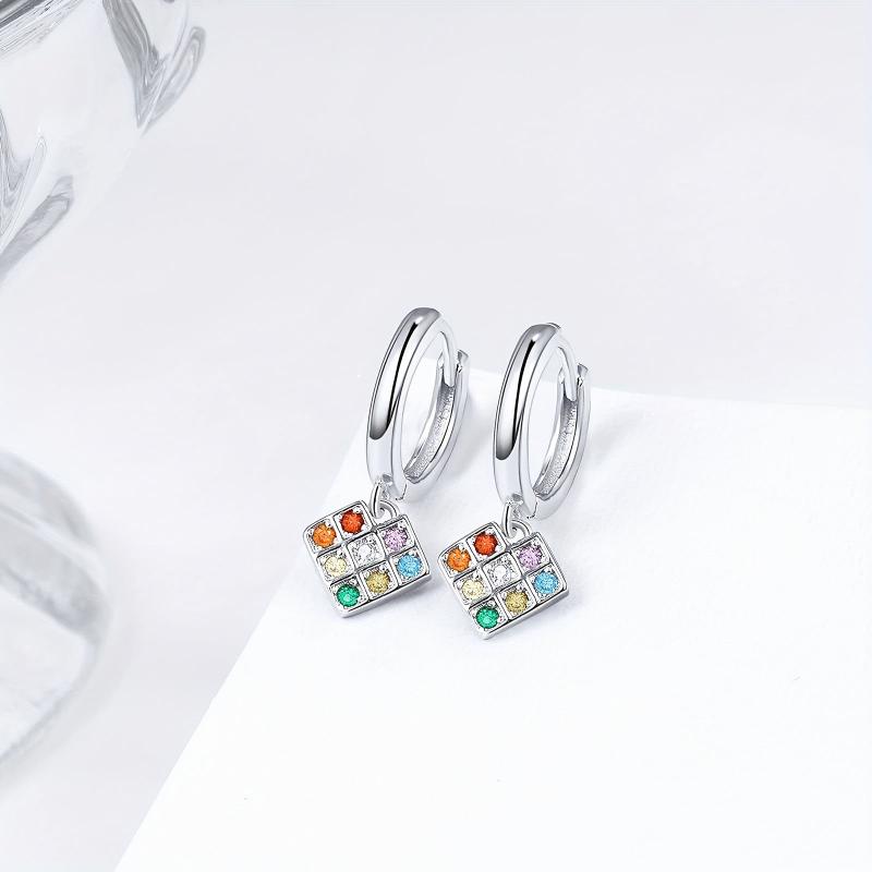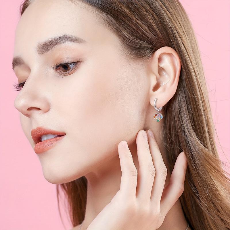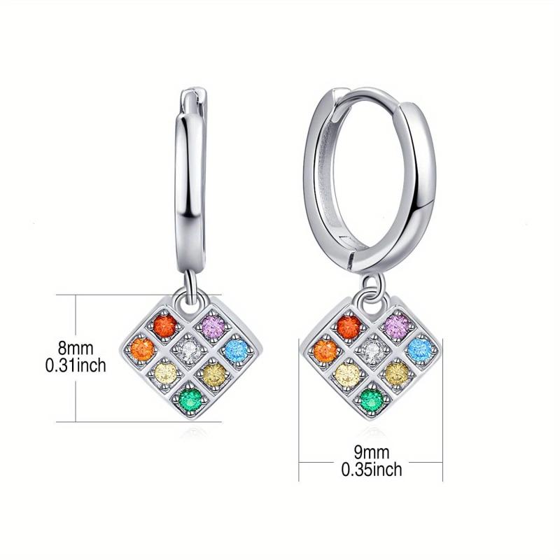 Adorn your ears with these unique 925 sterling silver pixel heart hoop earrings featuring a rainbow heart design with multicolor cube dangle earrings. Perfect for adding a pop of color to your look!