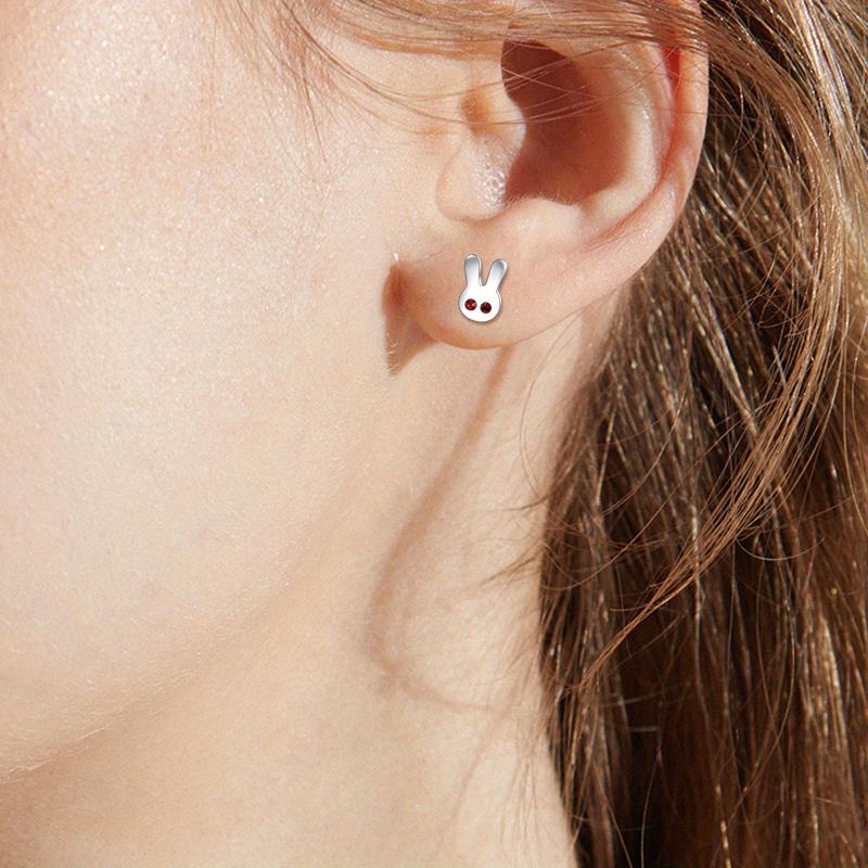 Adorable rabbit earrings made of sterling silver, perfect for bunny lovers. Cute and stylish accessory for everyday wear.