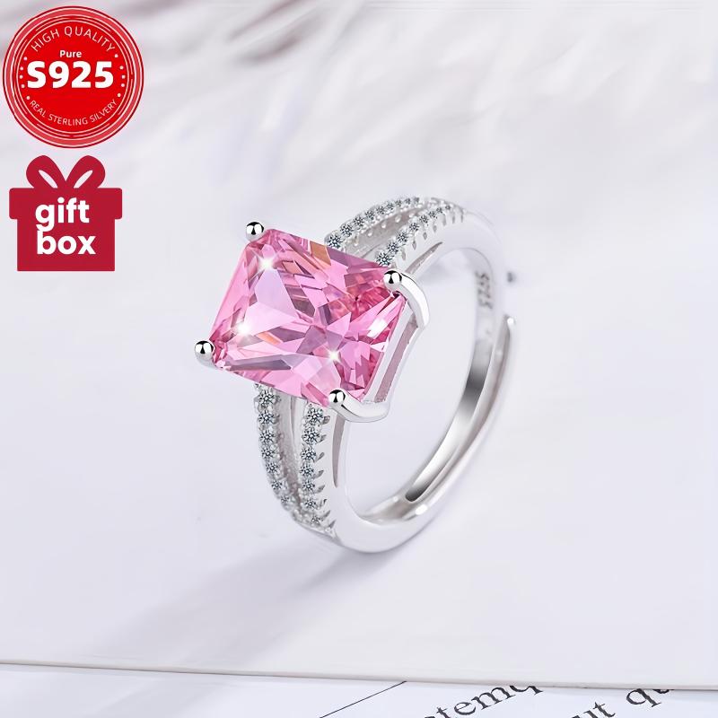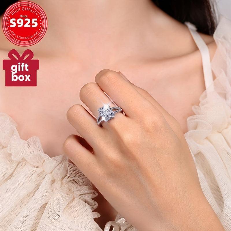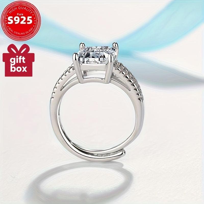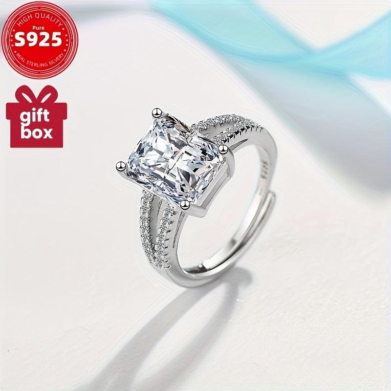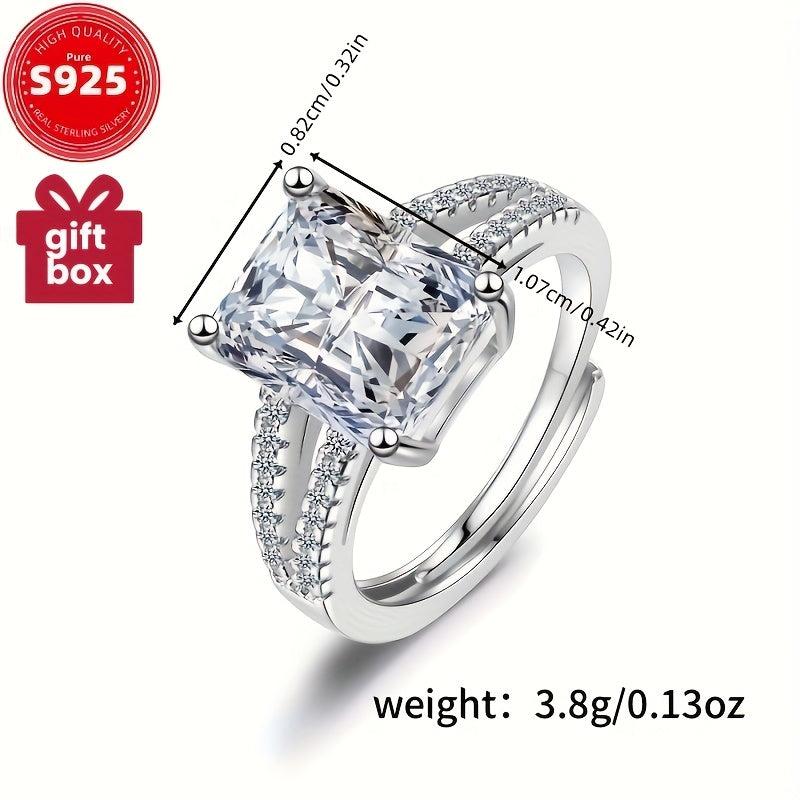 This stunning ring features a sparkling synthetic zirconia stone set in 925 sterling silver. Perfect for engagements or anniversaries, it weighs 3.8g (0.13oz).