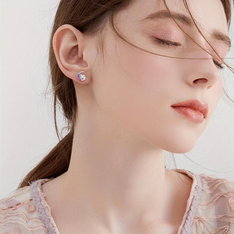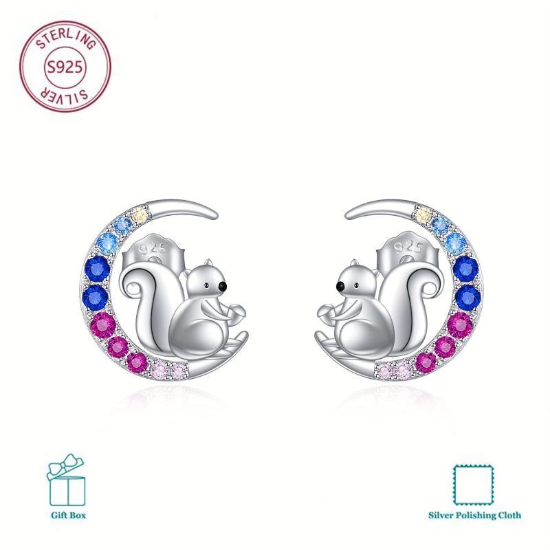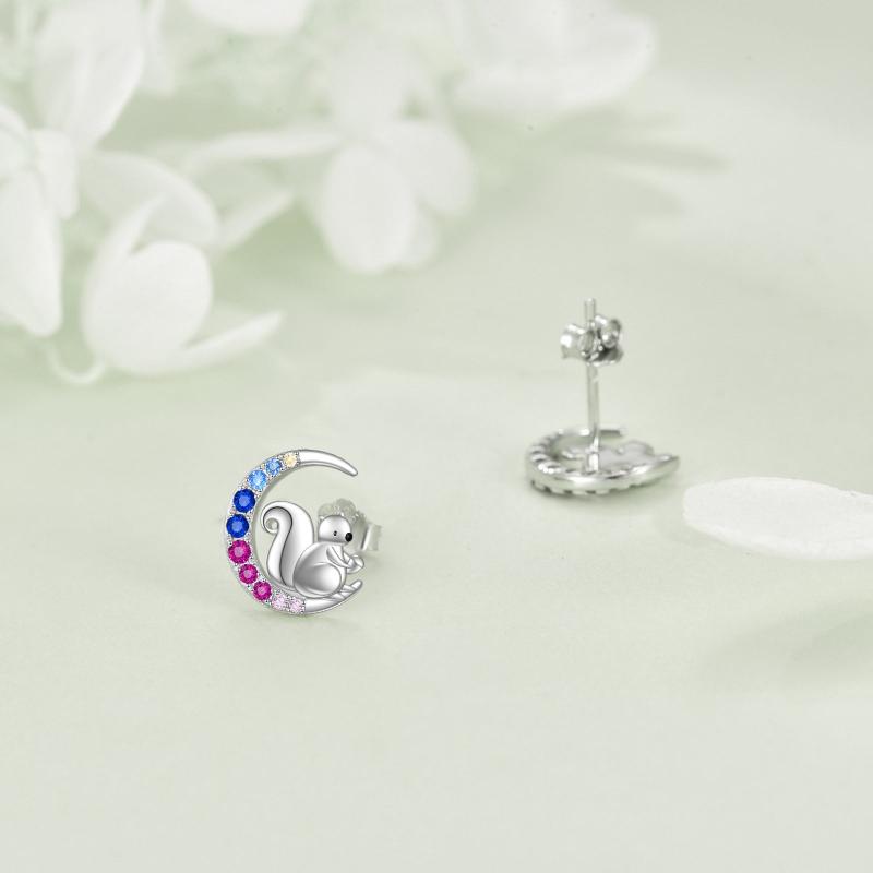 Adorn your ears with these charming sterling silver squirrel moon stud earrings, a perfect piece of squirrel jewelry for women.