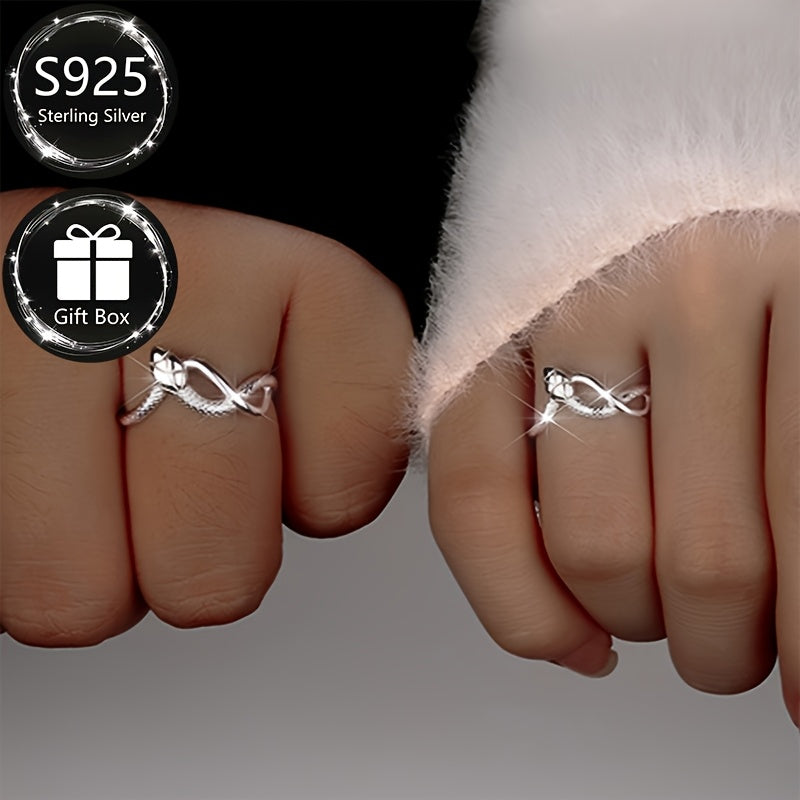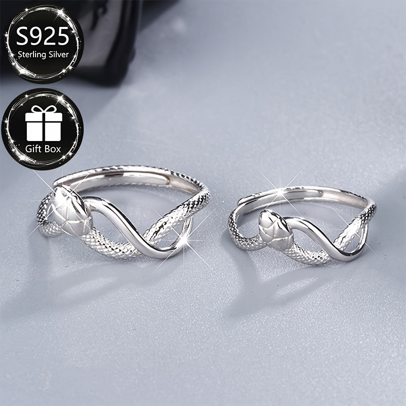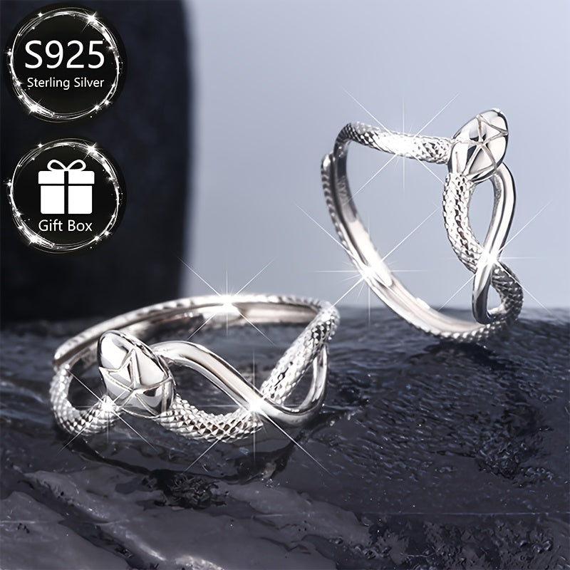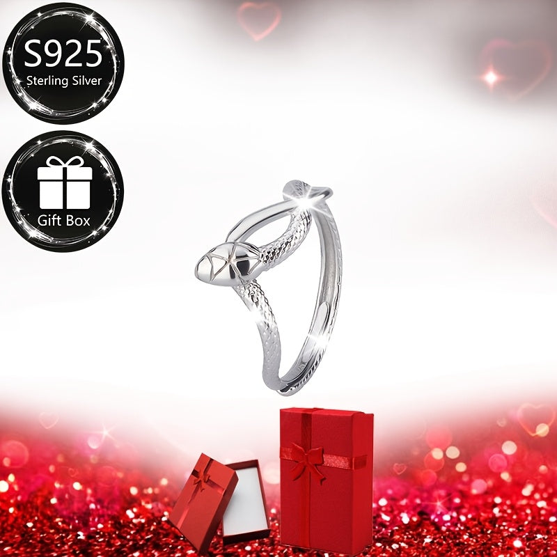 This 925 sterling silver open ring features a textured band with a snake design, perfect for daily wear. Ideal as a gift for friends and family or to treat yourself.