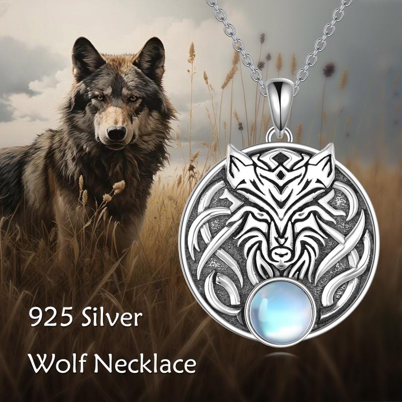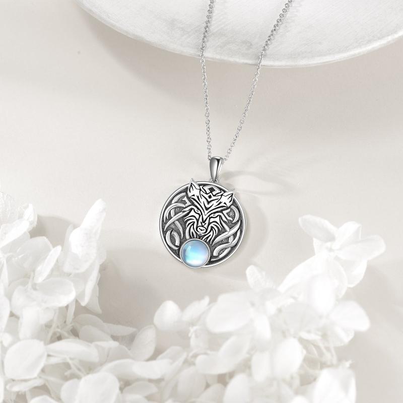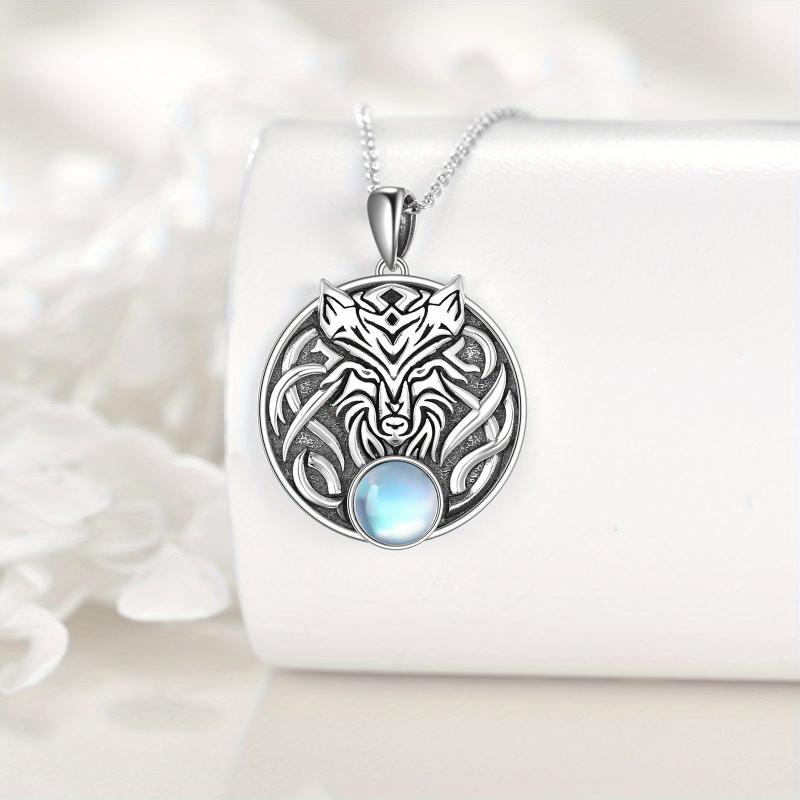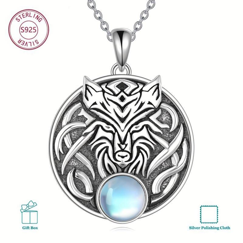 This stunning 925 sterling silver wolf necklace features a unique Celtic knot design with a moon and wolf pendant, perfect for both men and women.