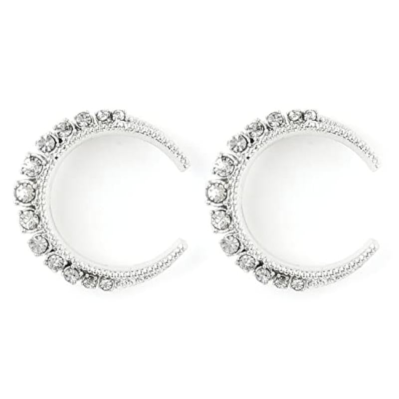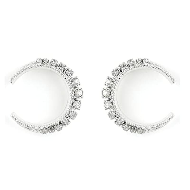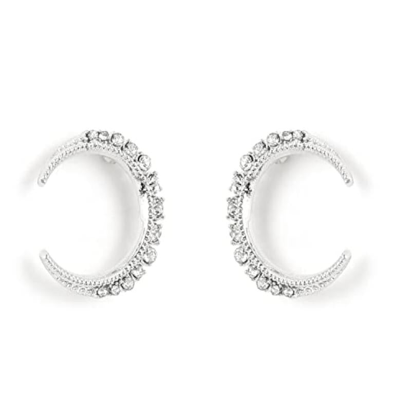 Elegant crescent-shaped earrings featuring colorful stones, perfect for adding a touch of style to any outfit.