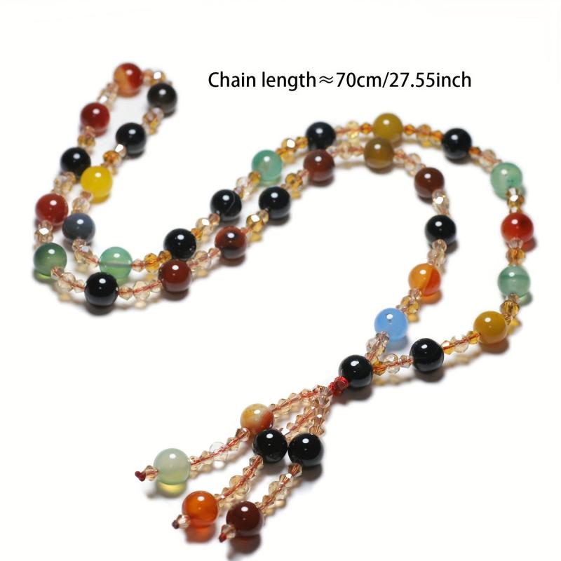 This colorful stone necklace features an ethnic style design that is perfect as a sweater chain for couples. It makes a great gift for loved ones.