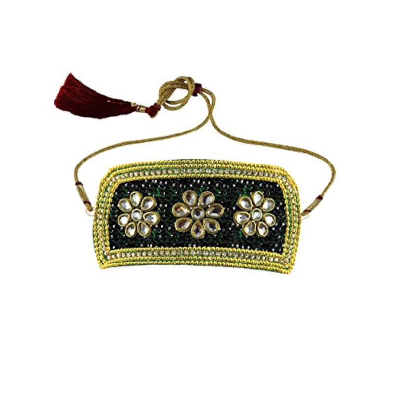 This beautiful brass bajubandh features stone studs for an elegant and ethnic look. Perfect for traditional Indian attire or special occasions.