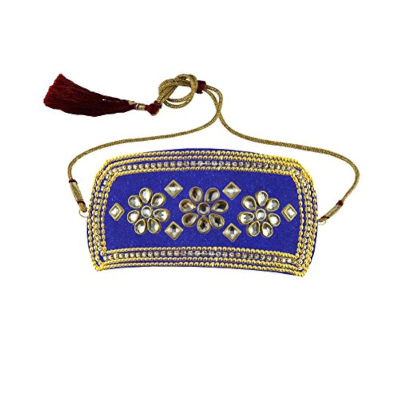 Elegant brass bajubandh armlet bracelet featuring stone studs for a stylish look.