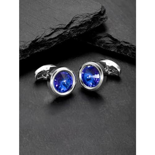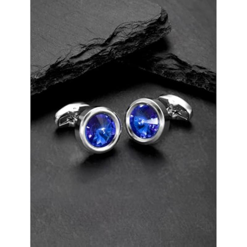 Elevate your formal look with these silver plated stone studded cufflinks. Perfect for business and formal occasions.