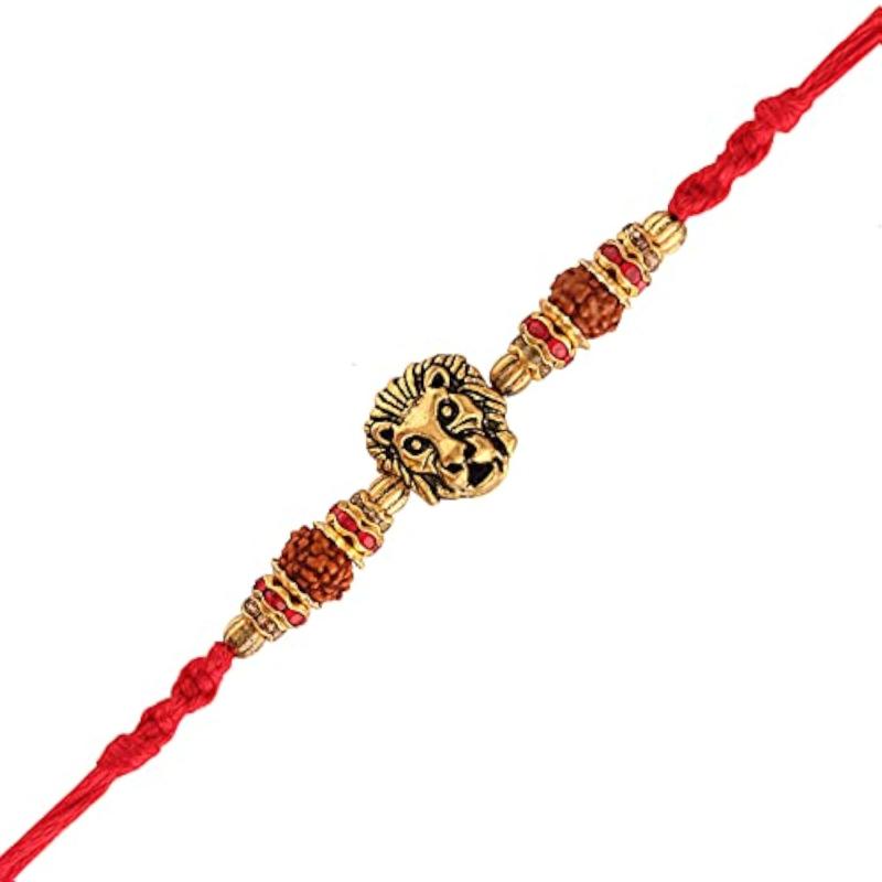 This lion rakhi bracelet features plated stone studs, perfect for gifting to your brother or bhaiya.
