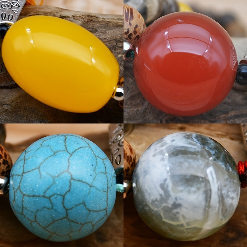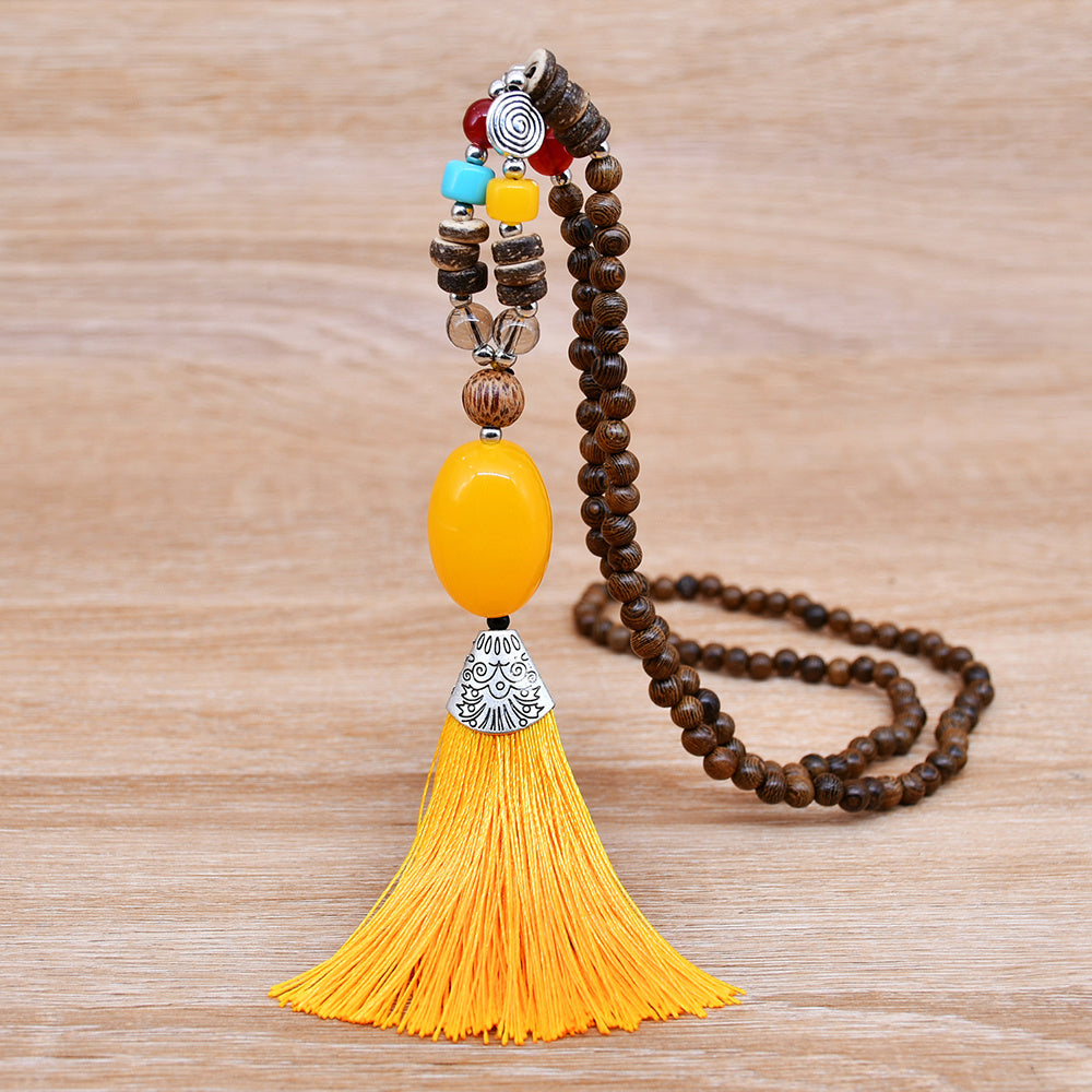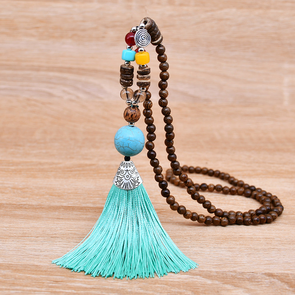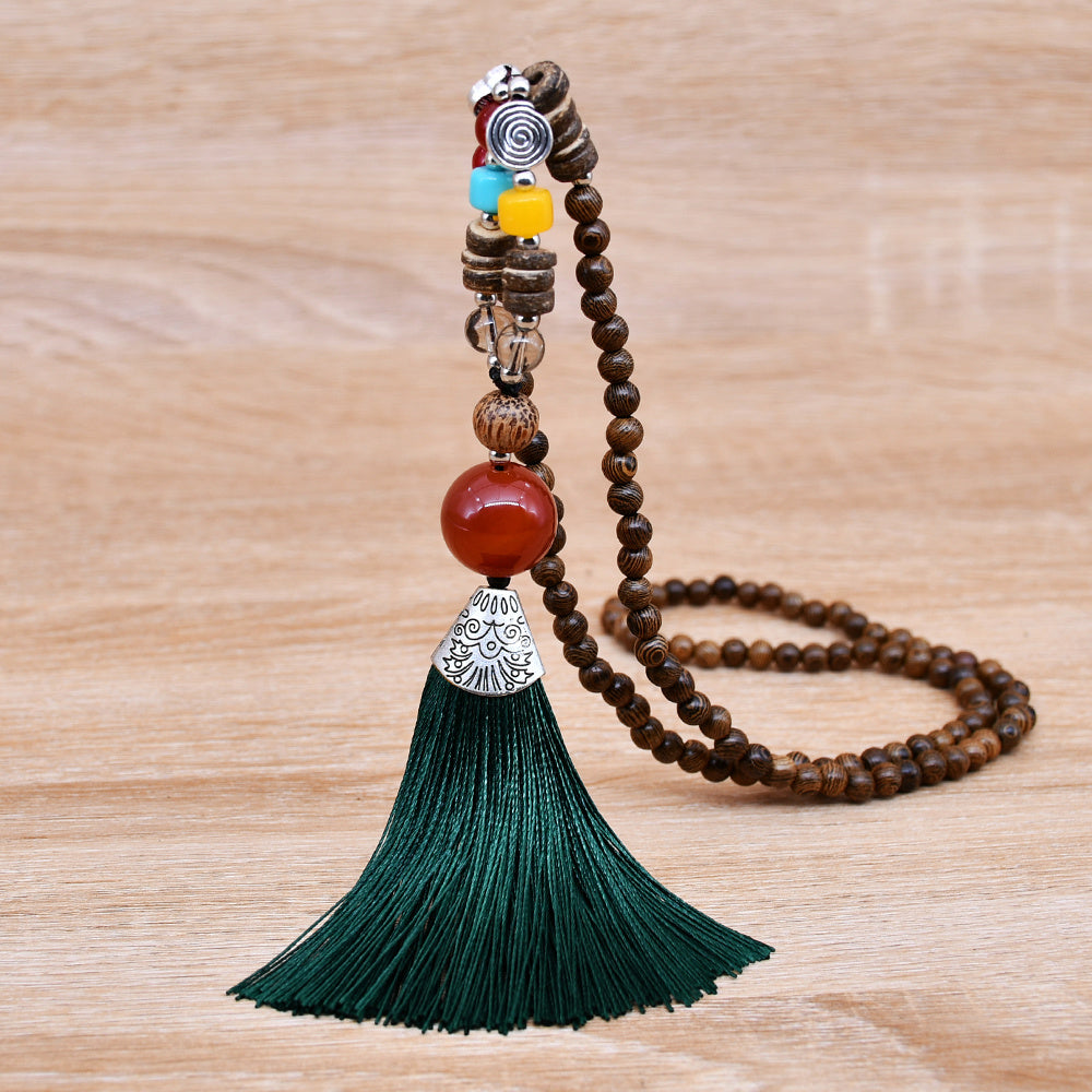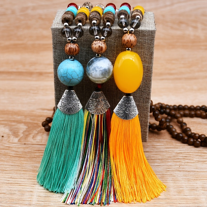 Elegant and unique vintage style necklace with stone tassel pendant. Features ethnic beaded design for women who appreciate artisan craftsmanship.