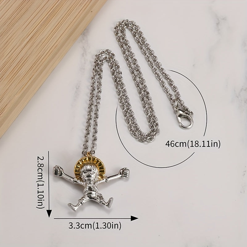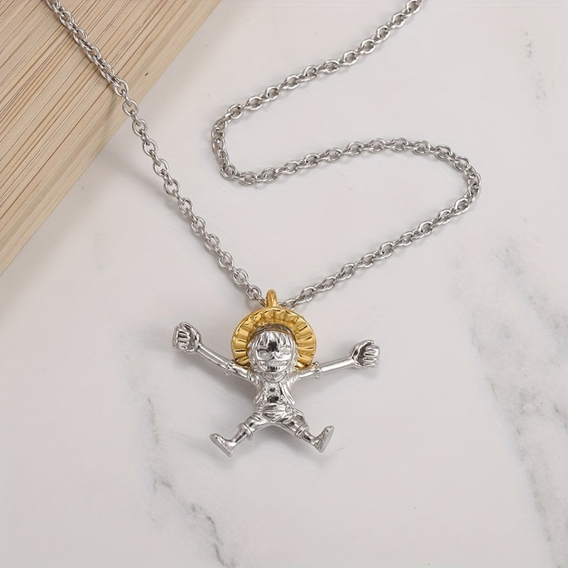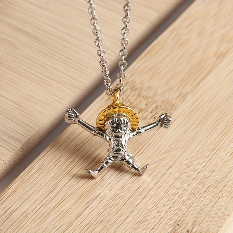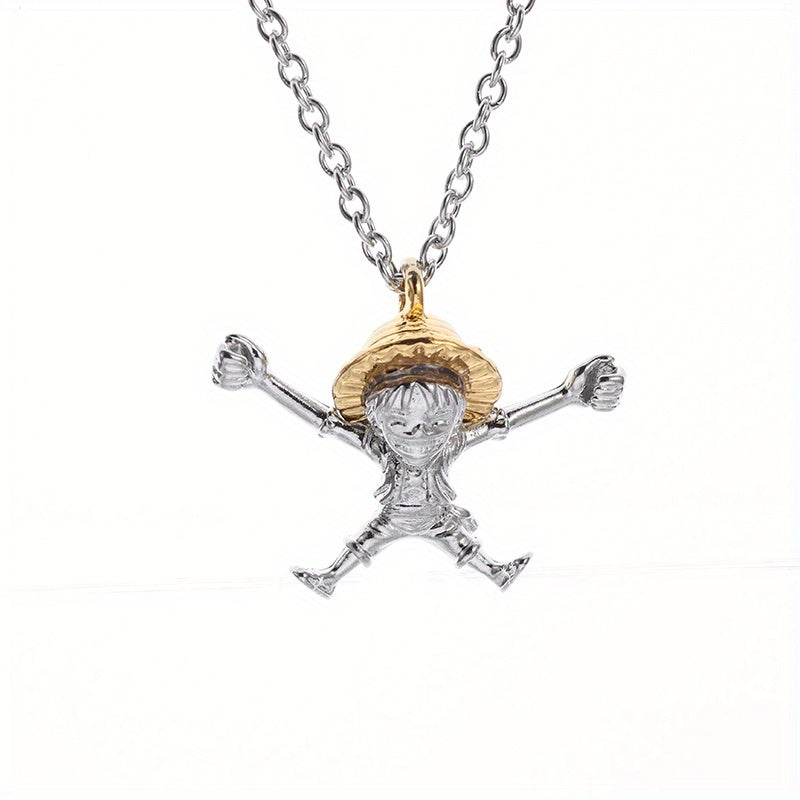 This creative cartoon anime pendant necklace features a straw hat boy design, perfect for daily wear or special occasions. The alloy material ensures durability and style.