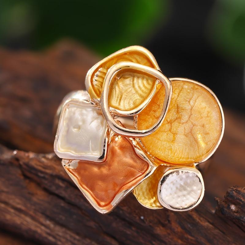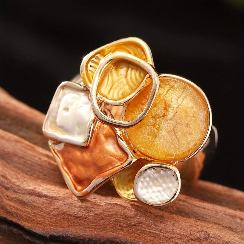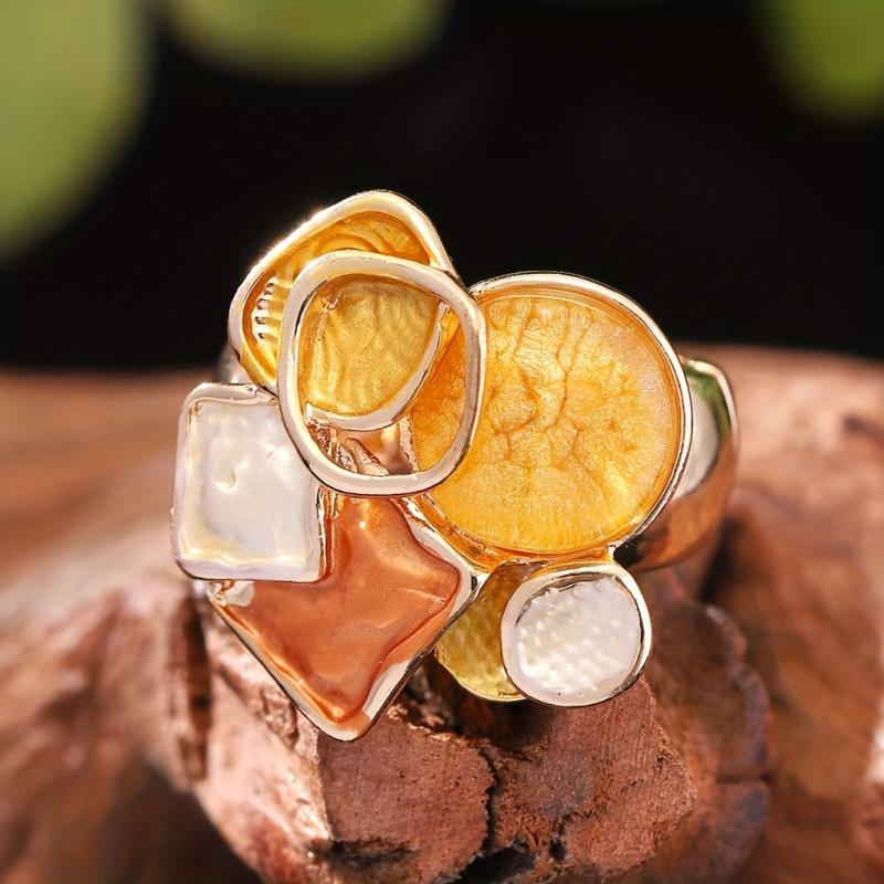 This vintage-inspired ring features colorful enamel detailing and is made of durable zinc alloy. It has a stretchable and adjustable design that fits most finger sizes. Perfect for adding a bohemian touch to your outfit.