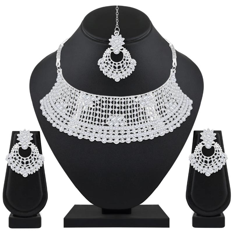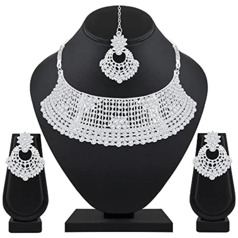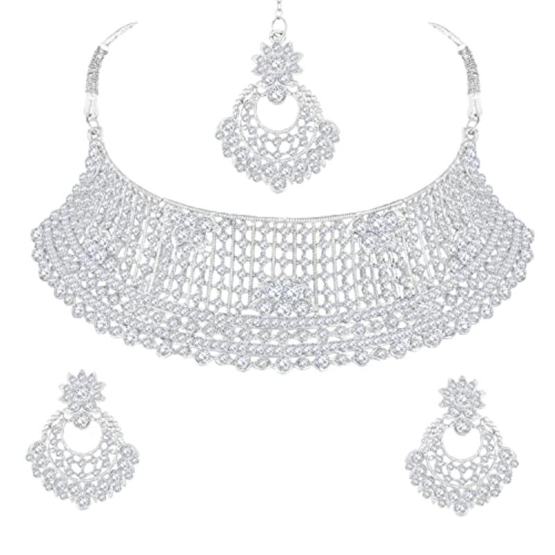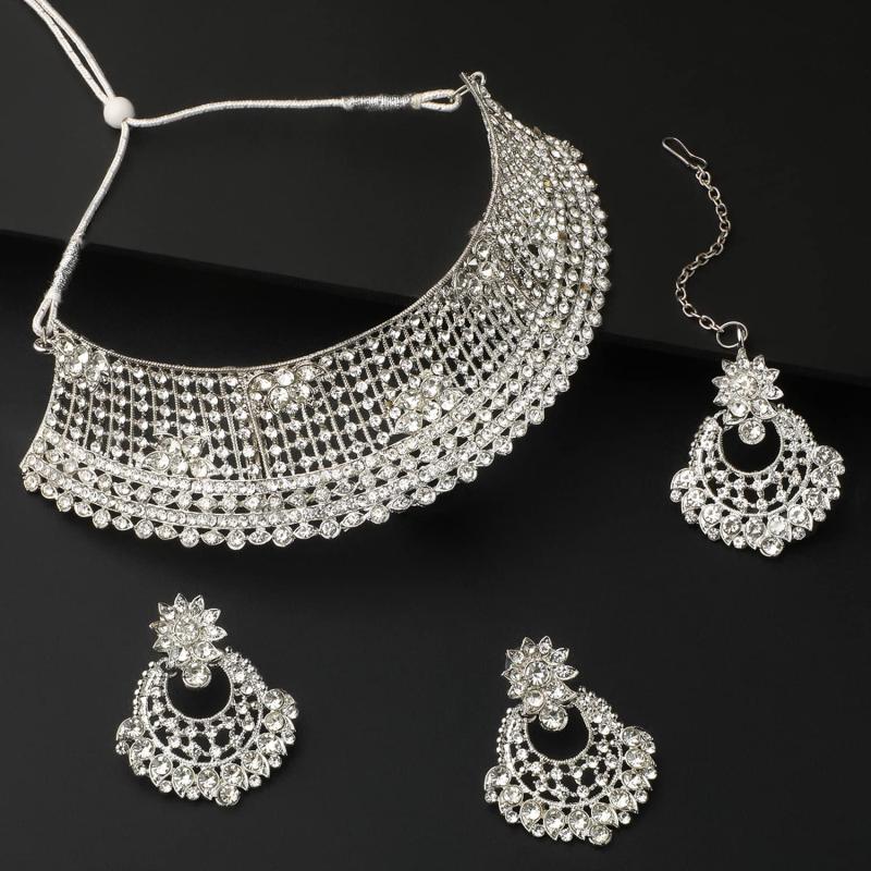 Elegant choker necklace set with diamond studded plated design.