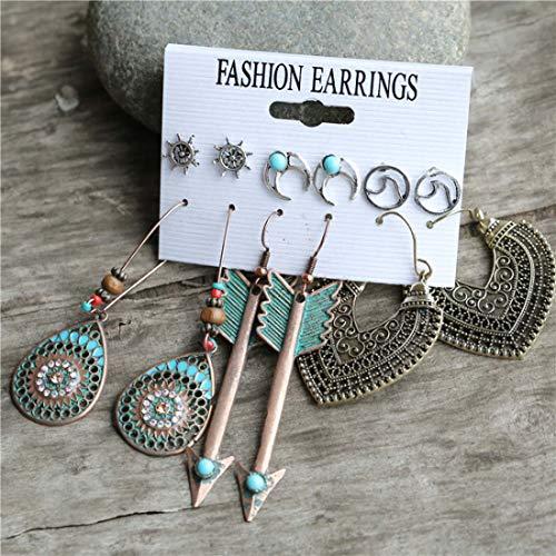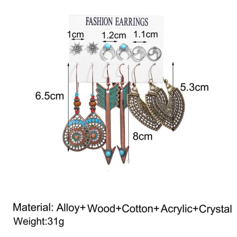 Elevate your style with this exquisite set of 6 oxidised German plated earrings. Perfect for both casual and formal occasions.