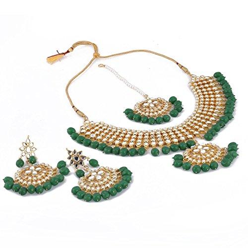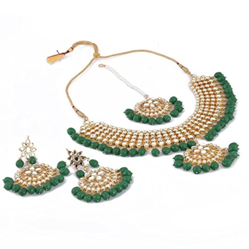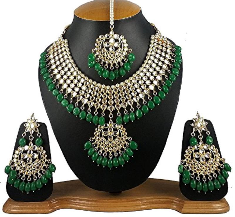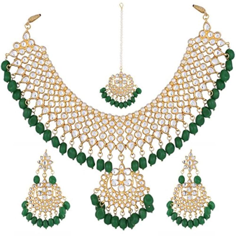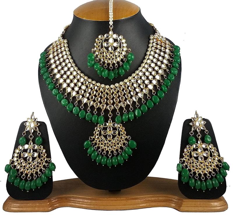 Adorn yourself with this exquisite and luxurious Kundan necklace set that comes with matching earrings. Perfect for special occasions.