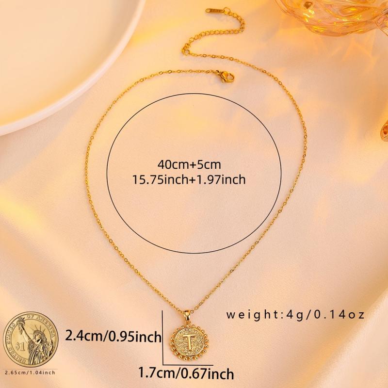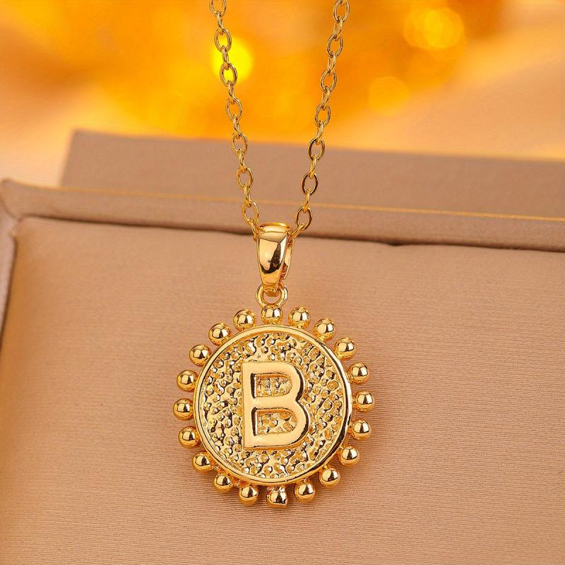 This round pendant necklace features all 26 letters, making it a stylish and unique gift option for any occasion.