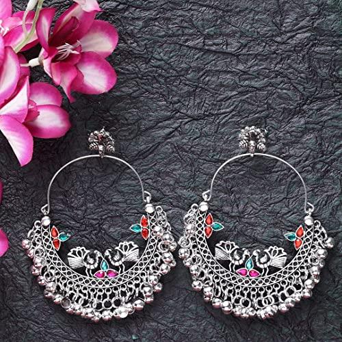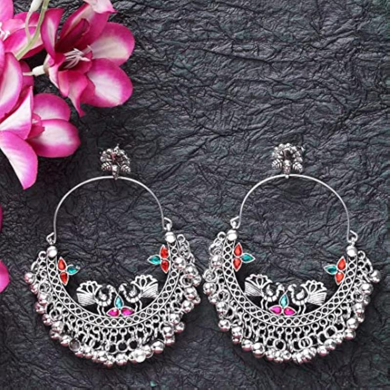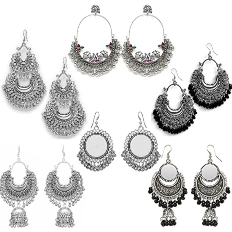 This combo set includes 6 stylish and antique multi-handmade oxidized peacock and chandbali earrings with beads, perfect for women and girls.