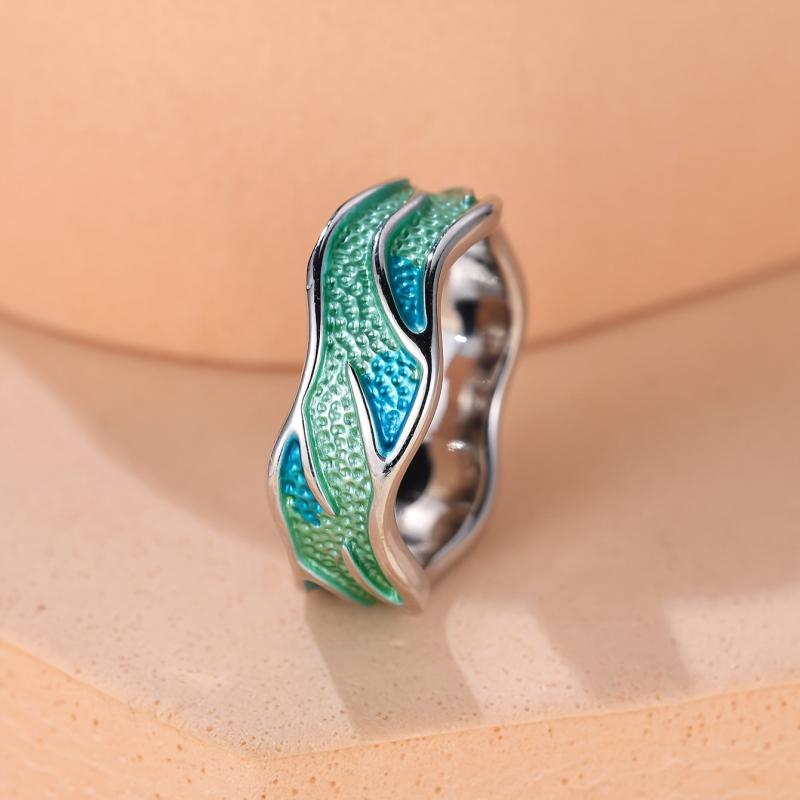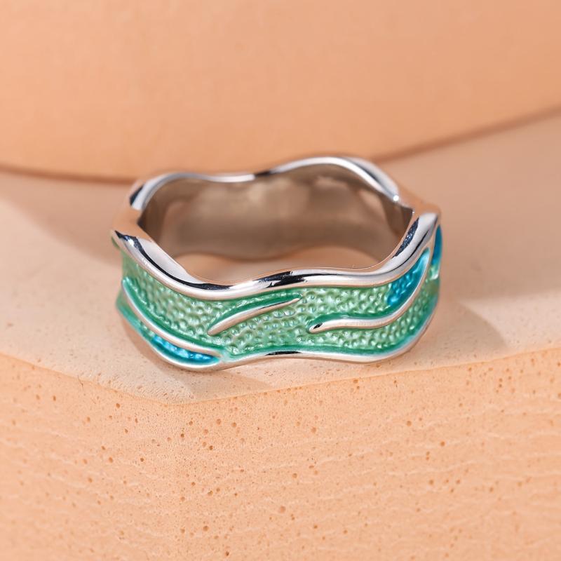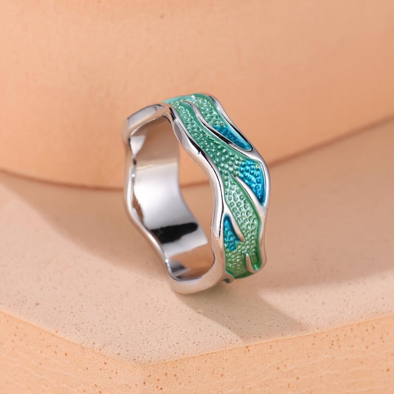 Elevate your style with this versatile band ring featuring an irregular wave design in a trendy green color. Perfect for daily wear or special occasions.