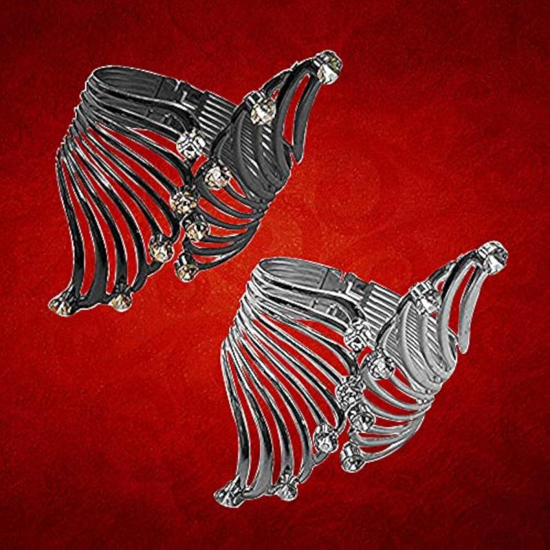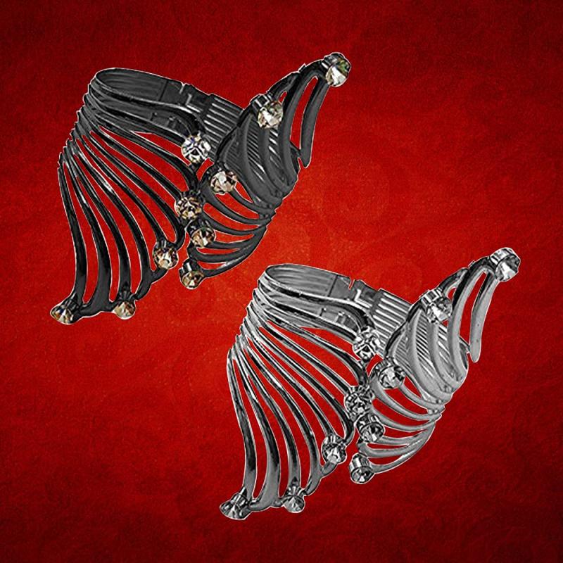Elevate your look with this trendy bangle bracelet featuring a sleek black and silver design. Perfect for any occasion.