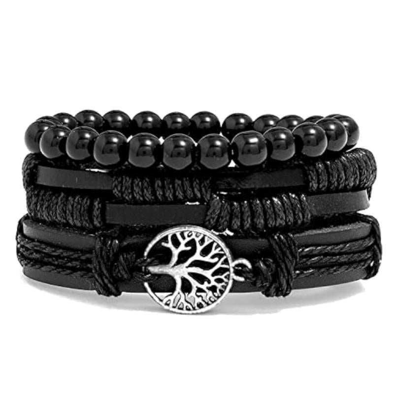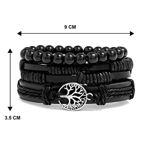 Enhance your style with this set of 3 leather bracelets featuring silver plated stainless steel metal. Perfect for men and women.